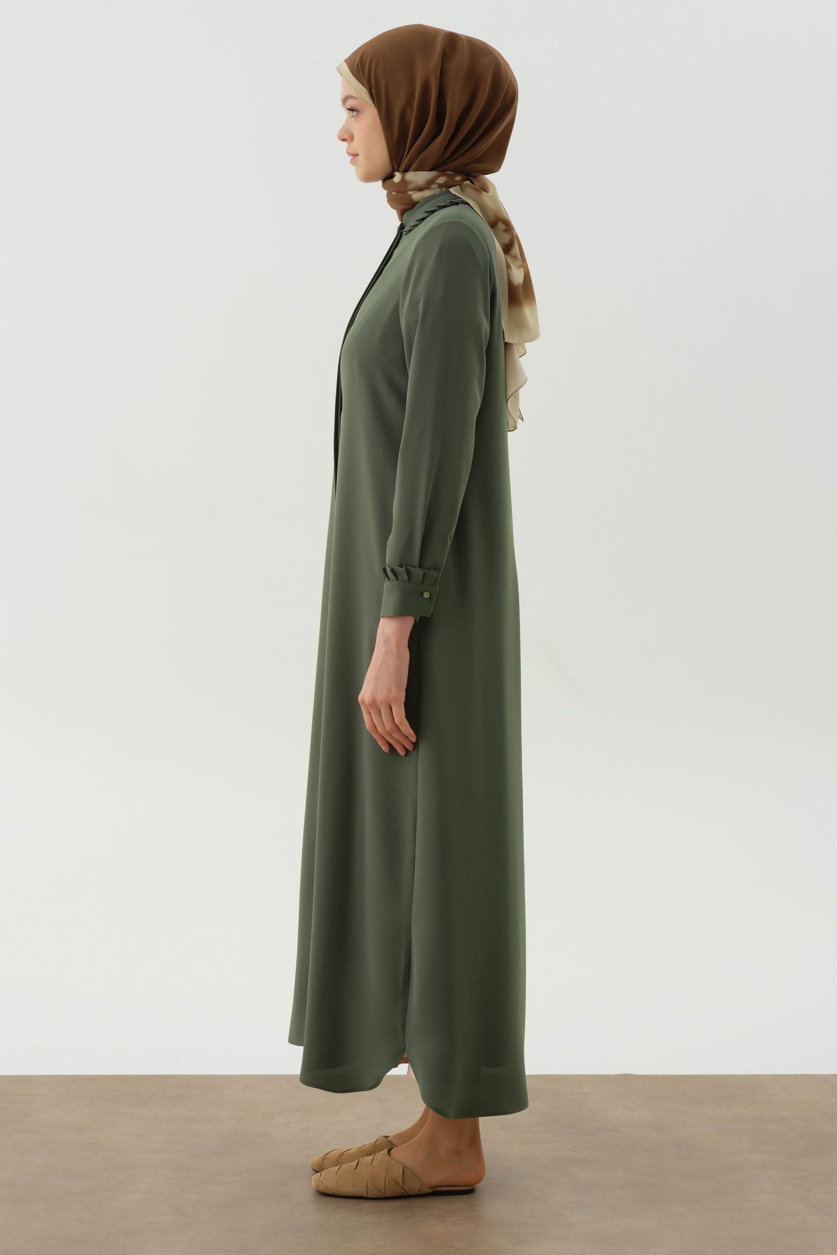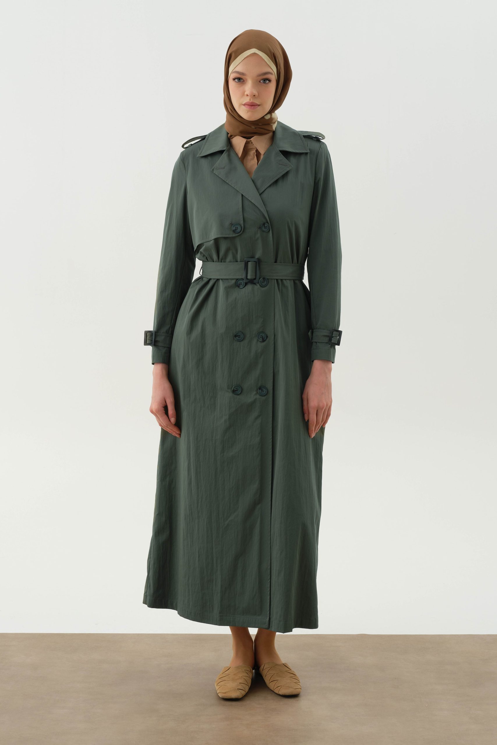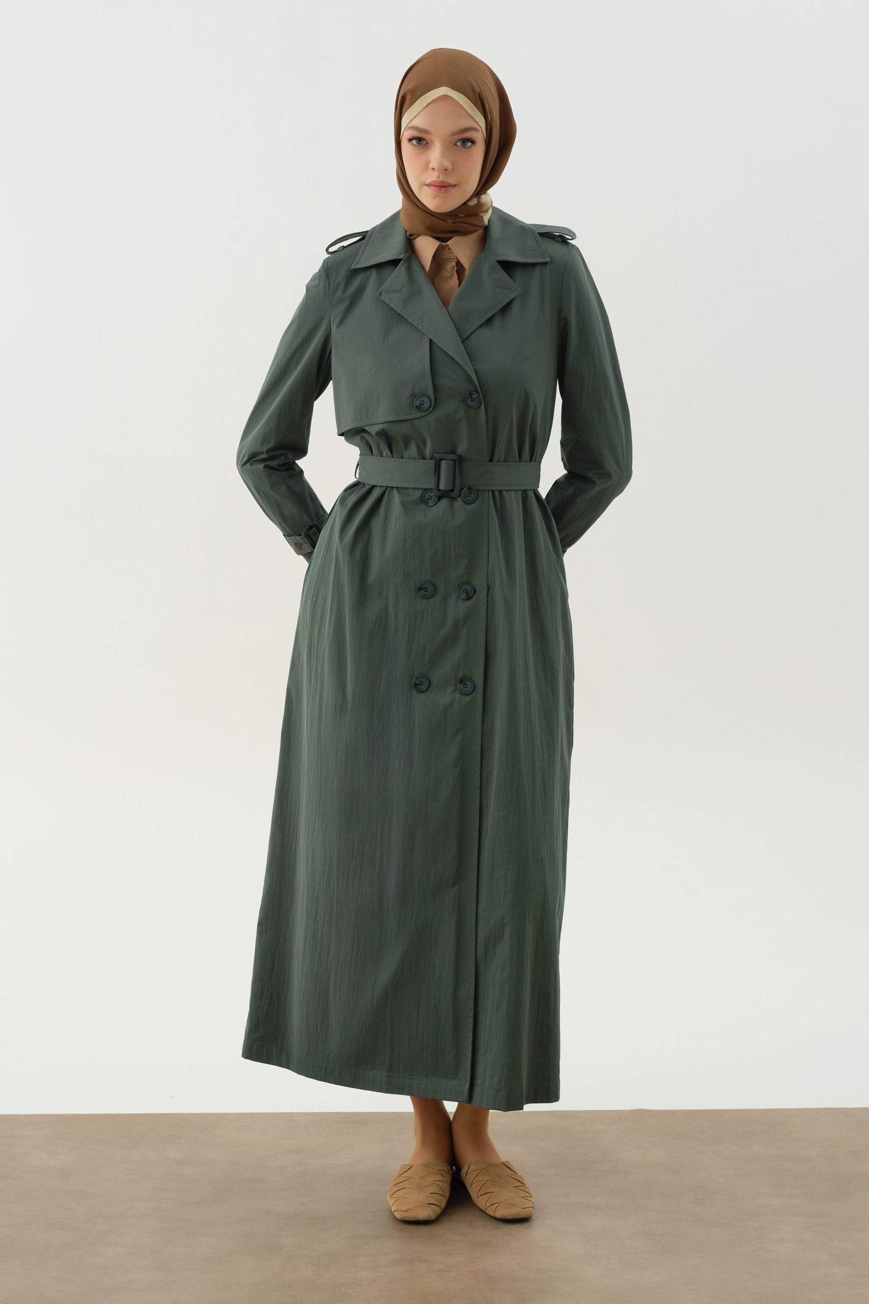 Kruvaze Kollu Kuşaklı Palto – Haki