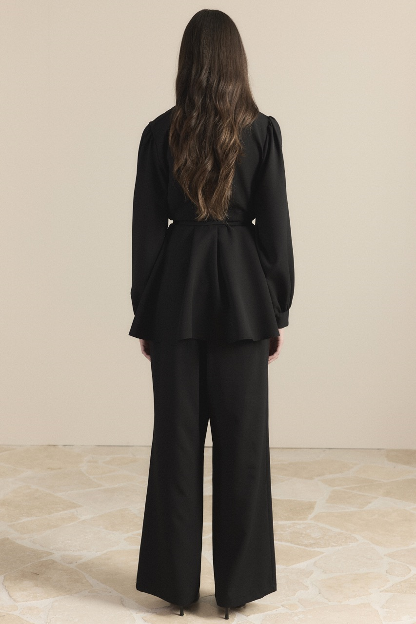 Dik Yaka Büzgülü Takım Siyah