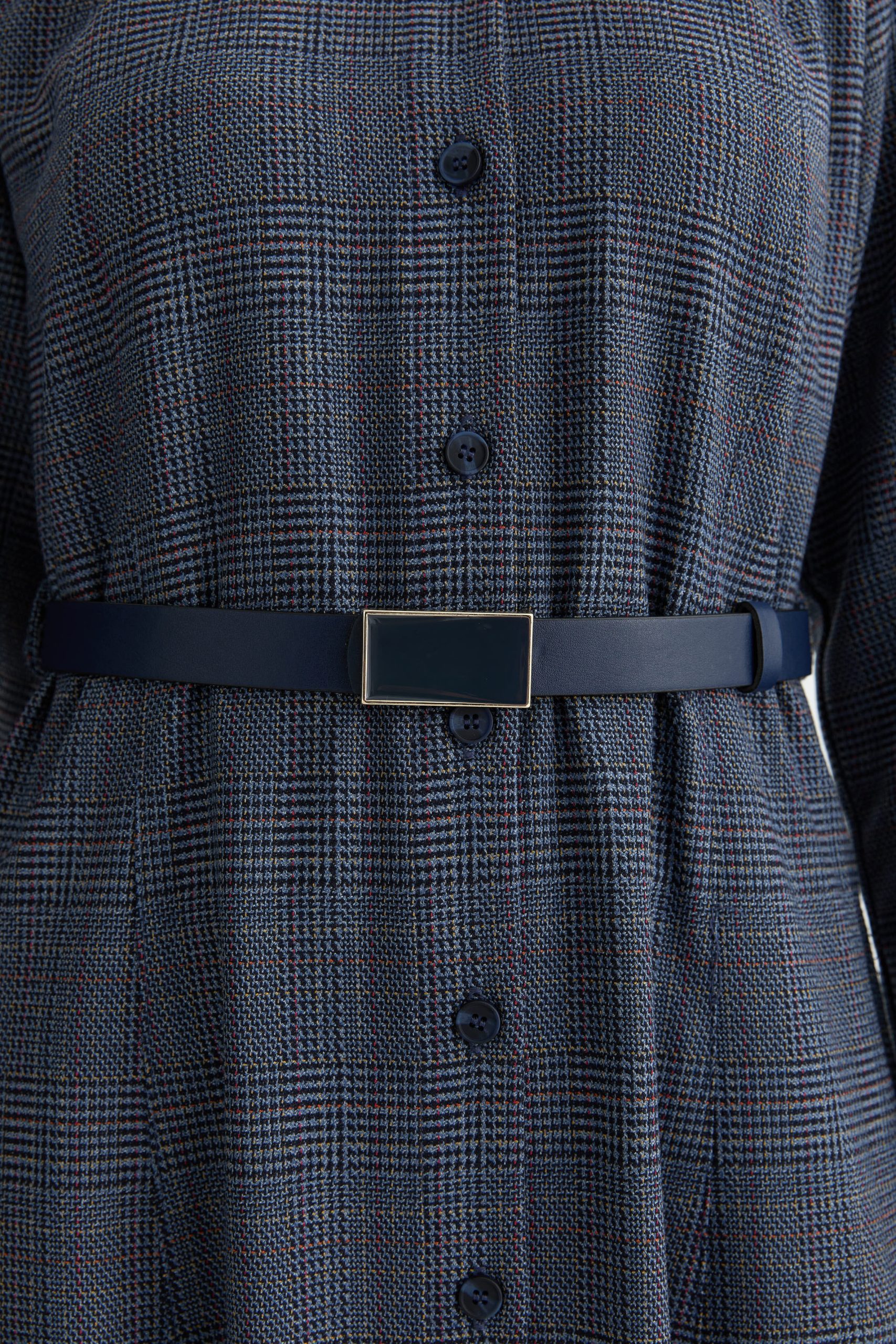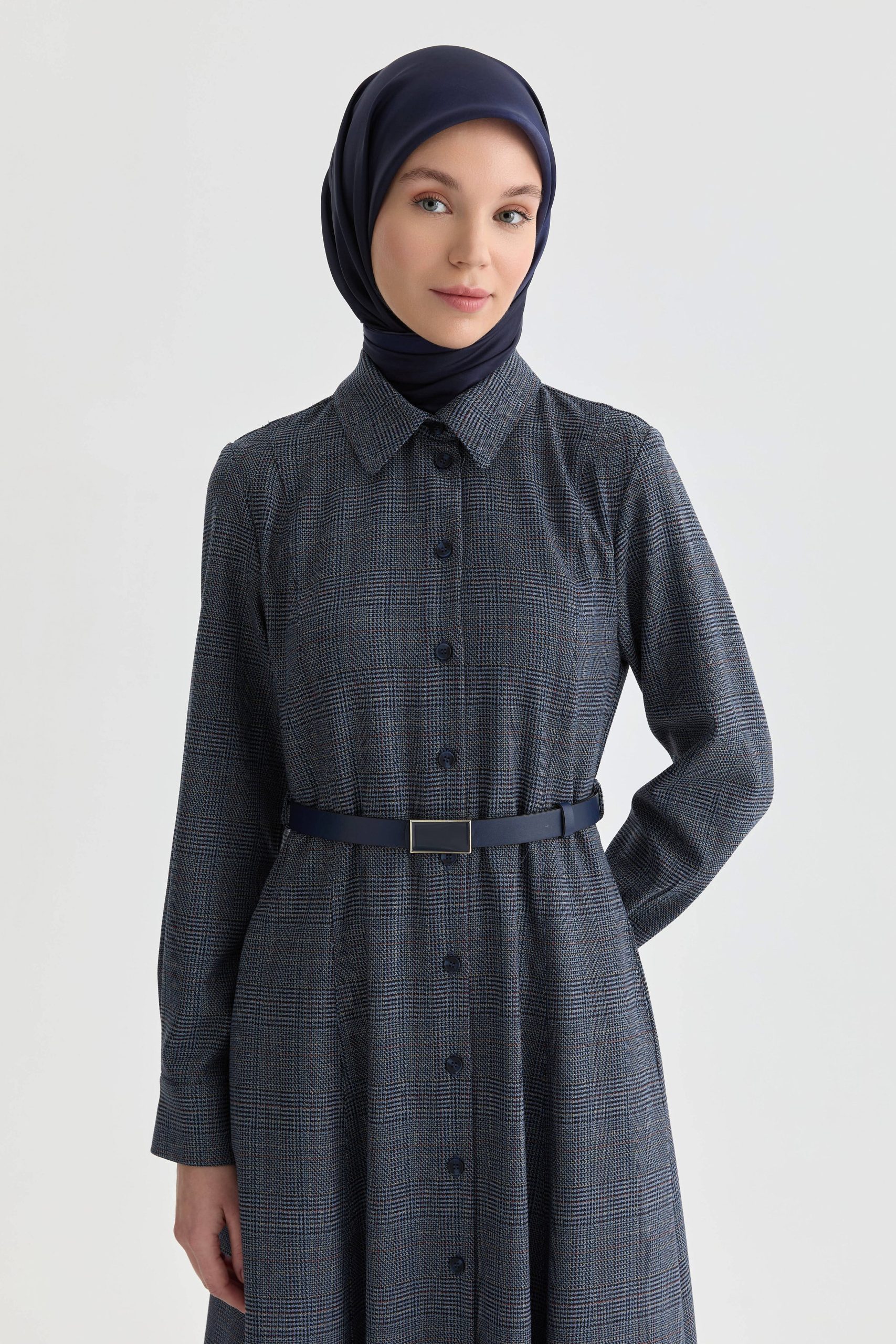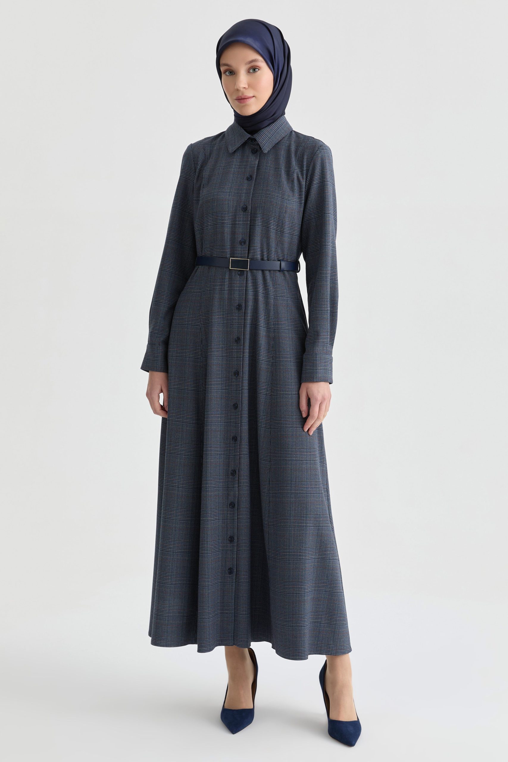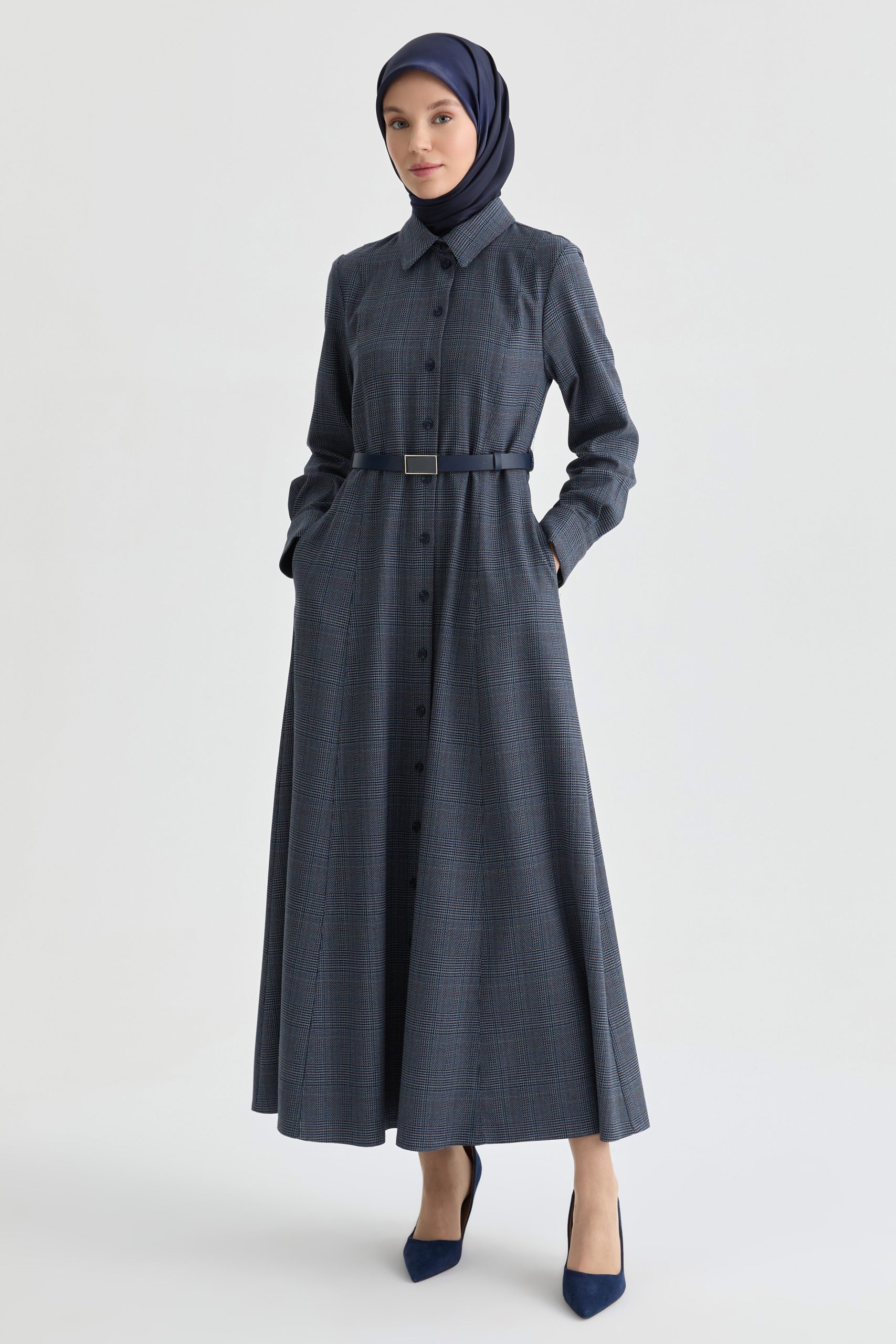 Kuplu Ekose Elbise, vücuda oturan üst formu ve beli belirginleştiren kup çalışmasıyla zarif bir siluet sunar. Ekose deseni modele sıcak ve klasik bir karakter kazandırırken, etek bölümündeki rahat kesim günlük hareketi kolaylaştırır.