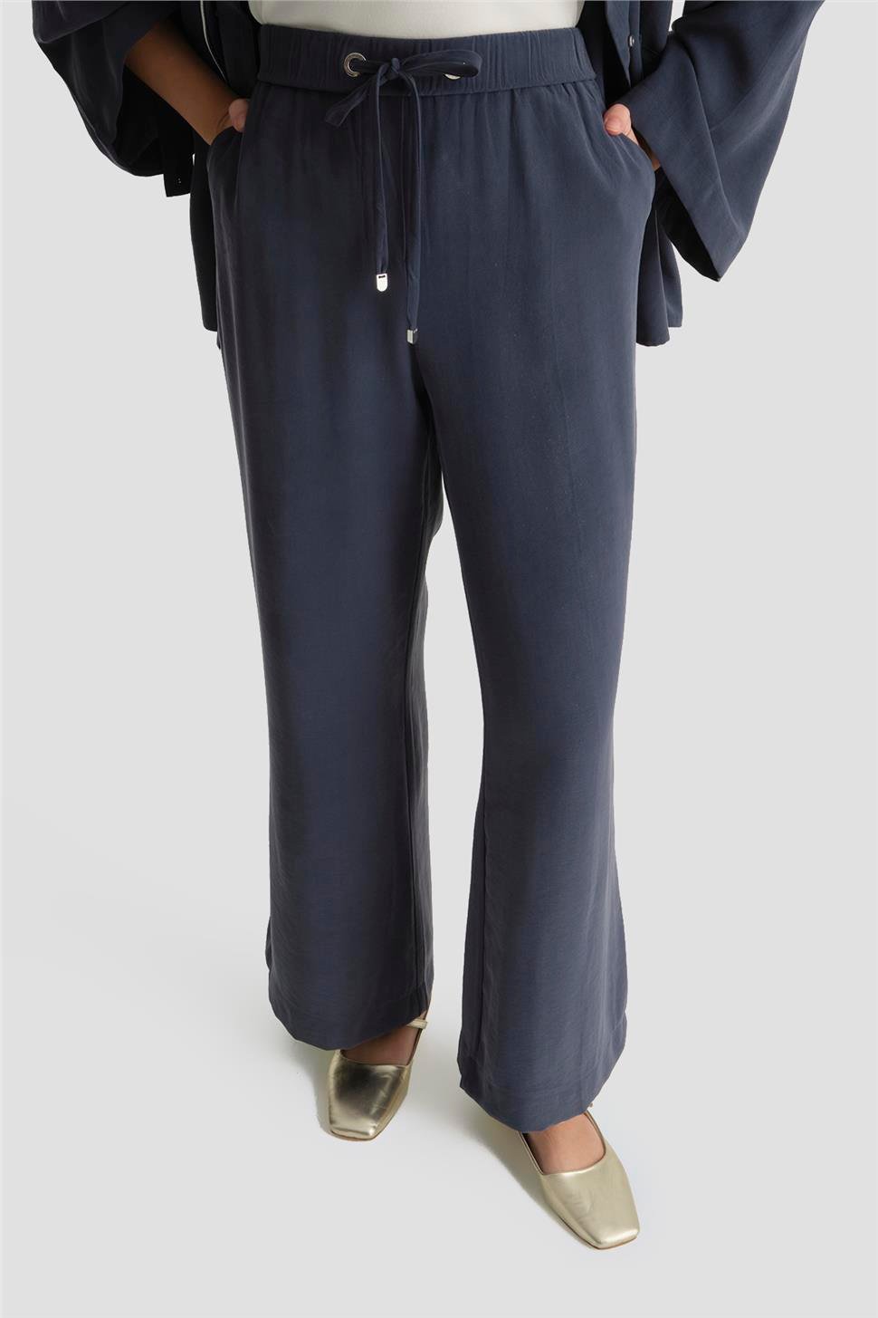 Tunik ve pantolonun uyumlu siluetiyle öne çıkan bu takım, aplike cep detaylarıyla sade tasarıma sofistike bir karakter kazandırır. Akıcı kumaşı gün boyu konfor sağlarken, modern çizgisi şehir stiline güçlü ama yalın bir dokunuş ekler.