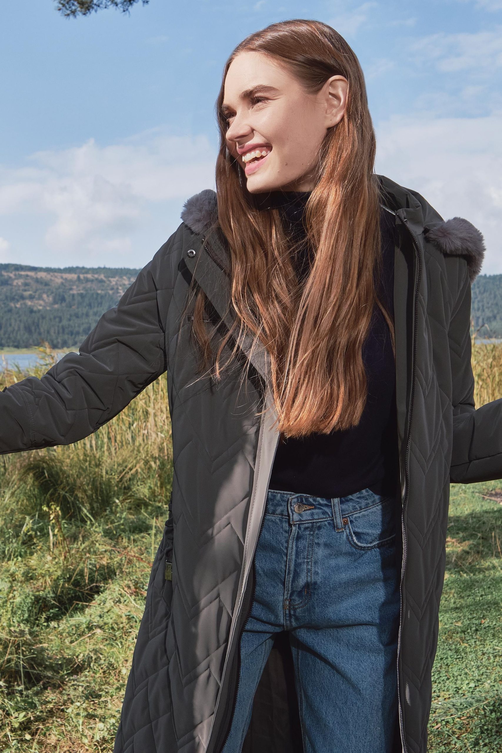 Modern füme tonuyla öne çıkan bu şişme mont, kürk detaylı kapüşonu ve uzun kesimiyle kış günlerinde şıklığı ve sıcaklığı bir arada sunar. Günlük kombinlerden özel davetlere kadar farklı alanlarda rahatlıkla kullanılabilir.