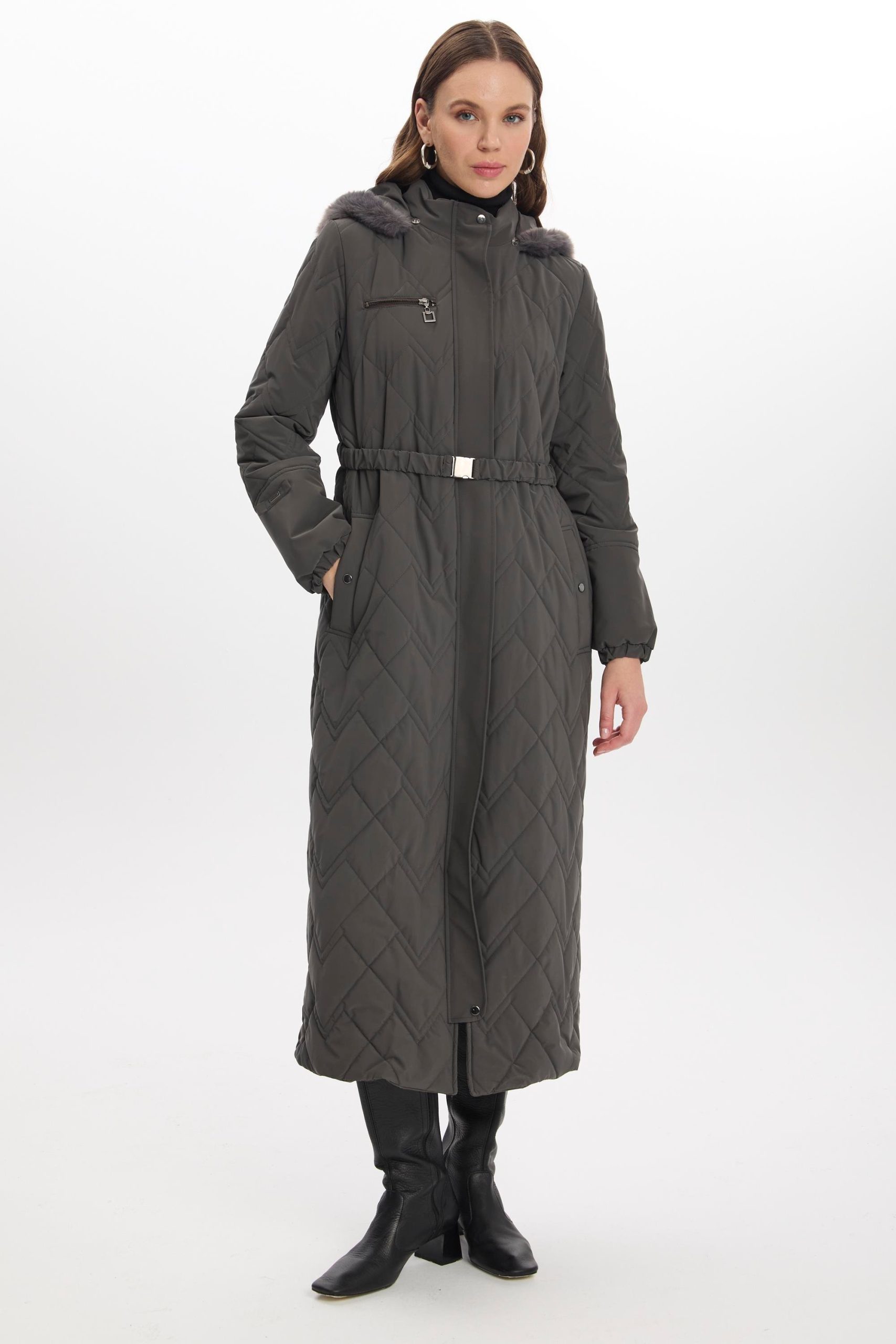 Kürk detaylı kapüşon – Uzun kesim – Kemerli – Cepli – Astarlı – Rahat kalıp