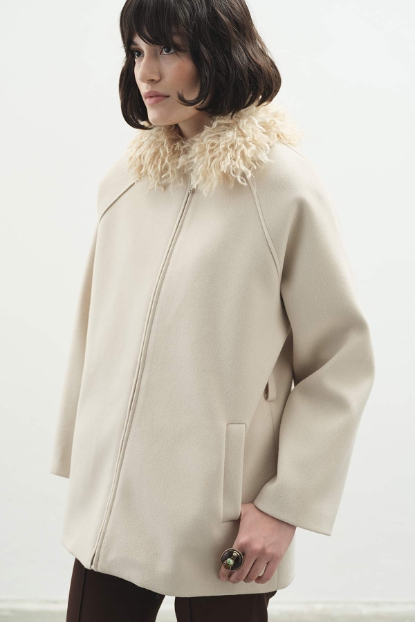 Kürk Yaka Bej Kaban