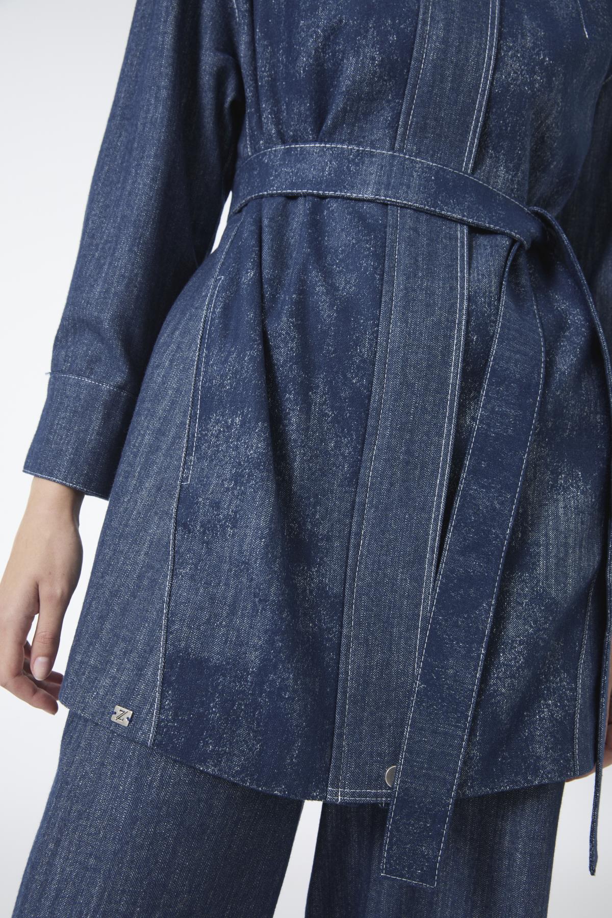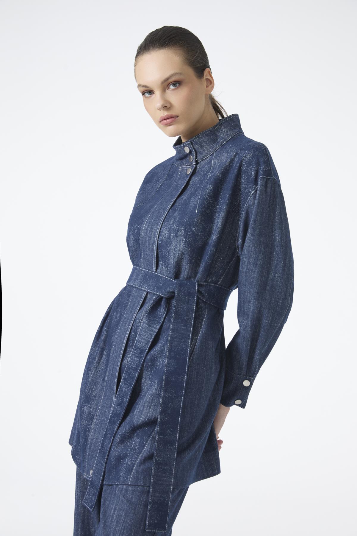 Lacivert rengin zamansız şıklığını modern kesimle buluşturan bu ikili takım, kuşaklı ceket ve geniş paça pantolondan oluşur. Günlük kullanımdan özel davetlere kadar her stile uyum sağlayan bu takım, rahat kalıbıyla konforlu bir kullanım sunar.