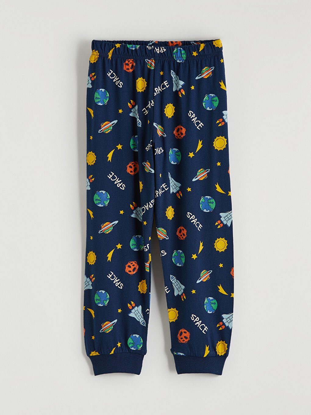 Lacivert Bisiklet Yaka Baskılı Erkek Çocuk Pijama Takım