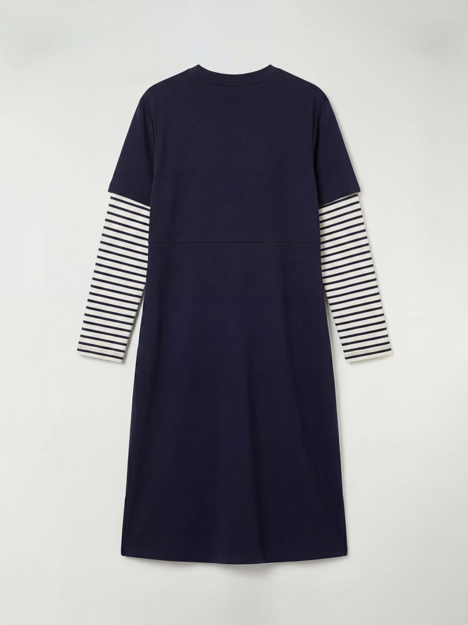 Lacivert Bisiklet Yaka Çizgili Sweat Elbise