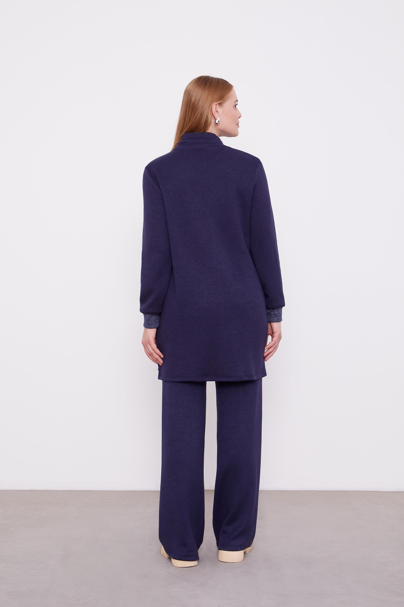 Lacivert Simli Kaşmir Kumaş İkili Takım