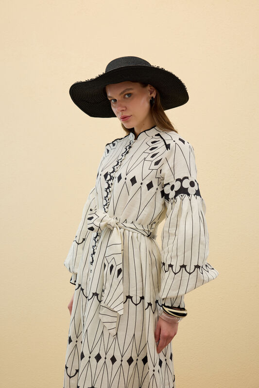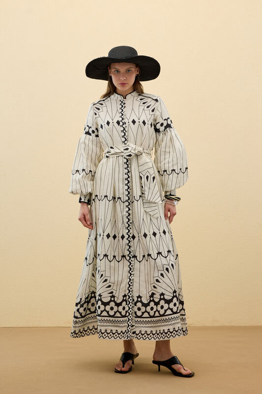 Kemerli ve ceplidir. Astarsızdır, iç göstermez. Renk: Kiremit Mevsim: Kışlık – Baharlık İçerik: %100 Pamuk Hafif bol kalıptır. Ceplidir. Kemerlidir. Boy: ortalama 135 cm Beden seçenekleri: S beden (34-36 uyumlu, göğüs: ortalama 112 cm) M beden (38-40 uyumlu) L beden (42-44 uyumlu) Not: Verilen ölçüler en küçük bedene aittir, bedenler arasında ortalama 4 cm fark bulunmaktadır. Manken boyu: 1.75 m Mankenin üzerindeki beden S bedendir. Hassas yıkama programında en fazla 30 derecede yıkanması gerekmektedir.