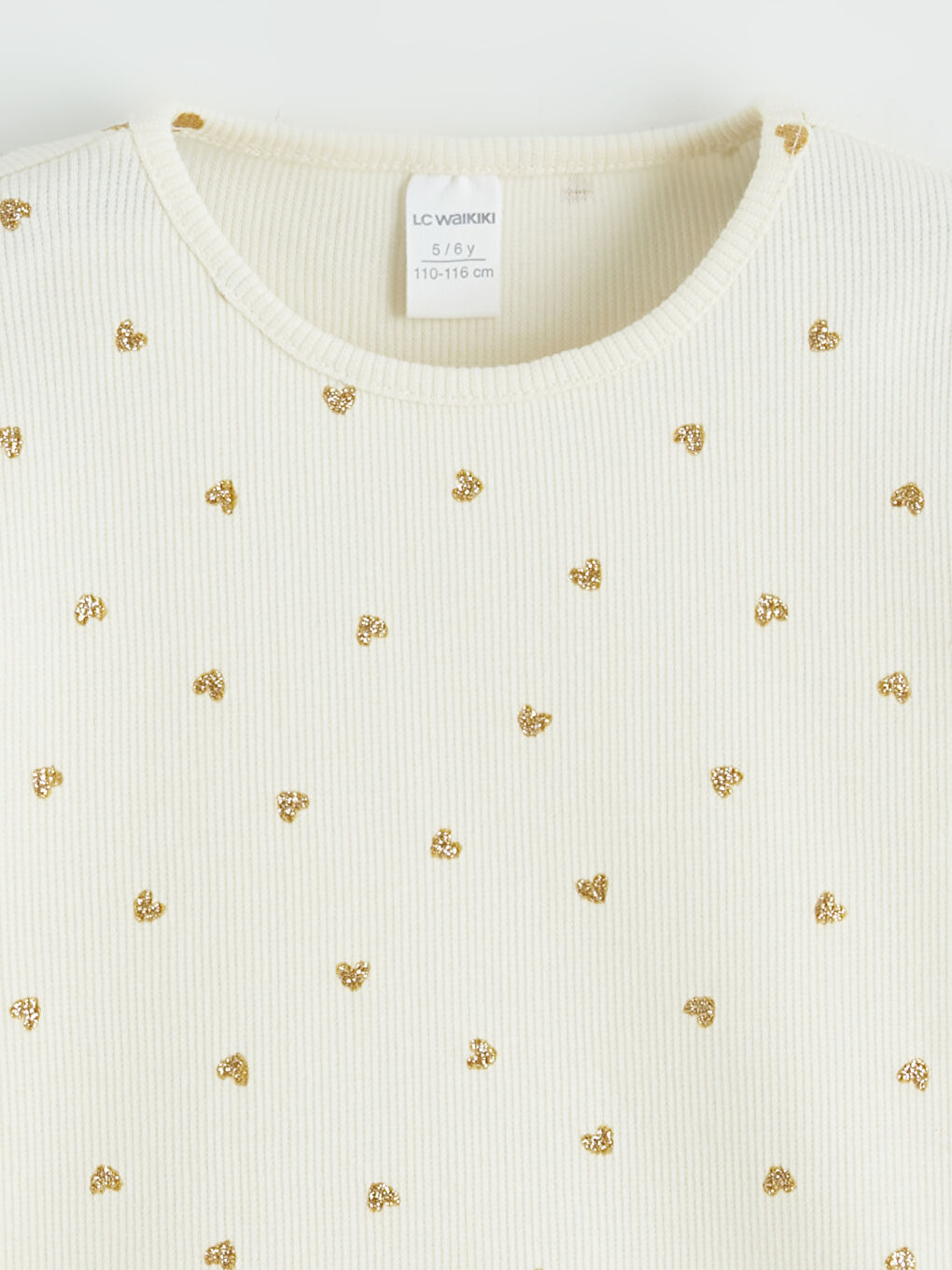 Kız Çocuk Bisiklet Yaka Slim Fit Kalpli Taşlı Büzgü Detaylı Pamuklu Kısa Kollu Crop Bluz