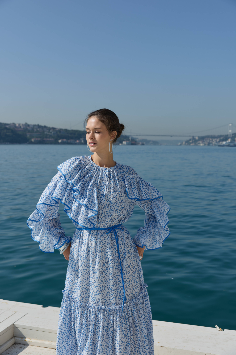 ÖZEL TASARIM ÇİÇEK DESENLİ PAMUKLU ELBİSE