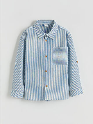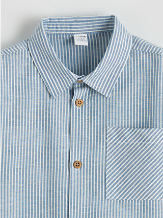 Mavi Çizgili Keten Karışımlı Erkek Çocuk Gömlek