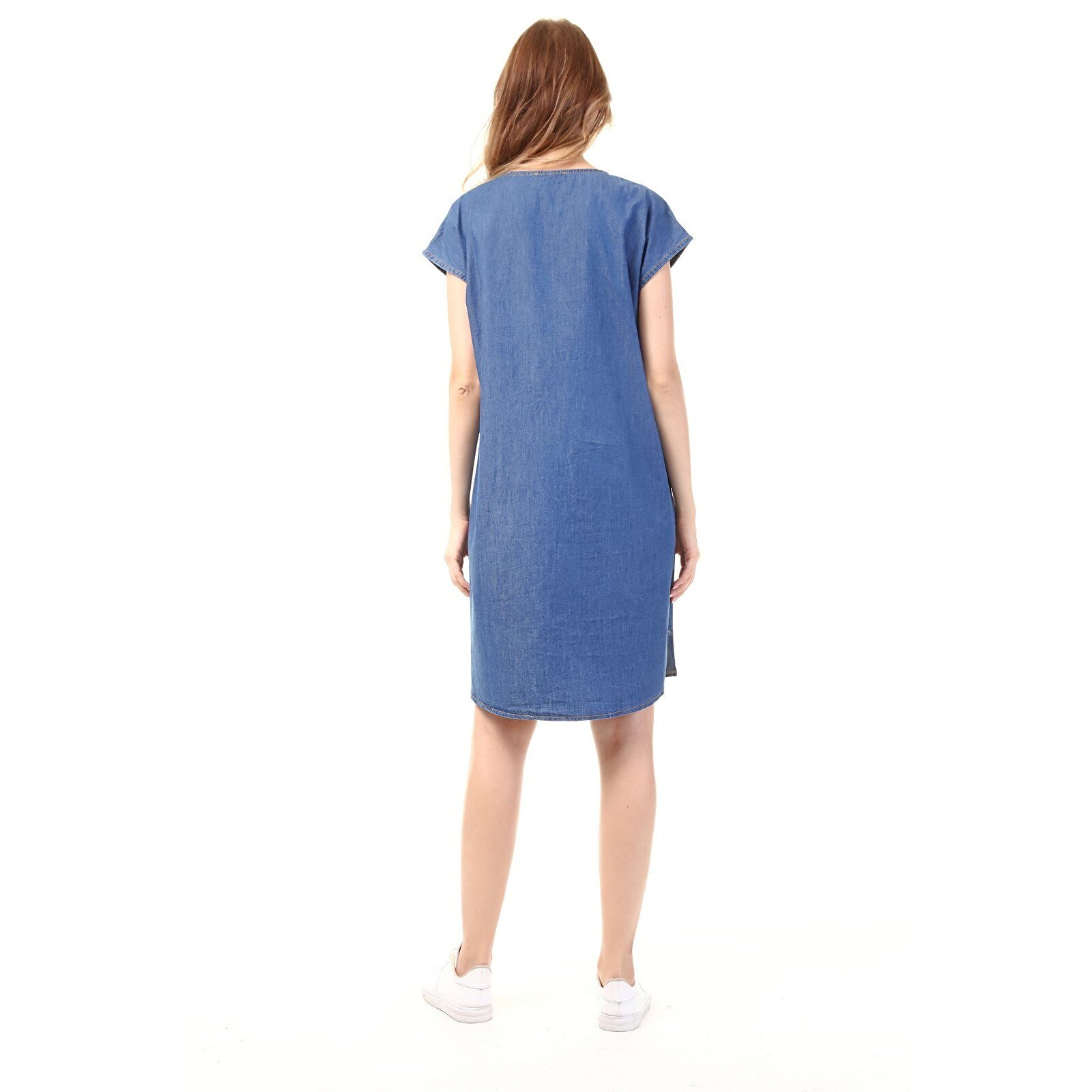 Doğal ve ferah bir görünüm sunan indigo rengi uzun tunik, yaz sezonunun hafif ve şık parçalarından biri. %88 Tencel ve %12 Pes karışımından üretilen kumaşı, yumuşak dokusu ve nefes alabilir yapısıyla gün boyu konfor sağlar. Minimal tasarımı, gizli patlı düğme detayı ve eteğinde yer alan zarif kavis kesimi ile modern bir duruş sergiler.