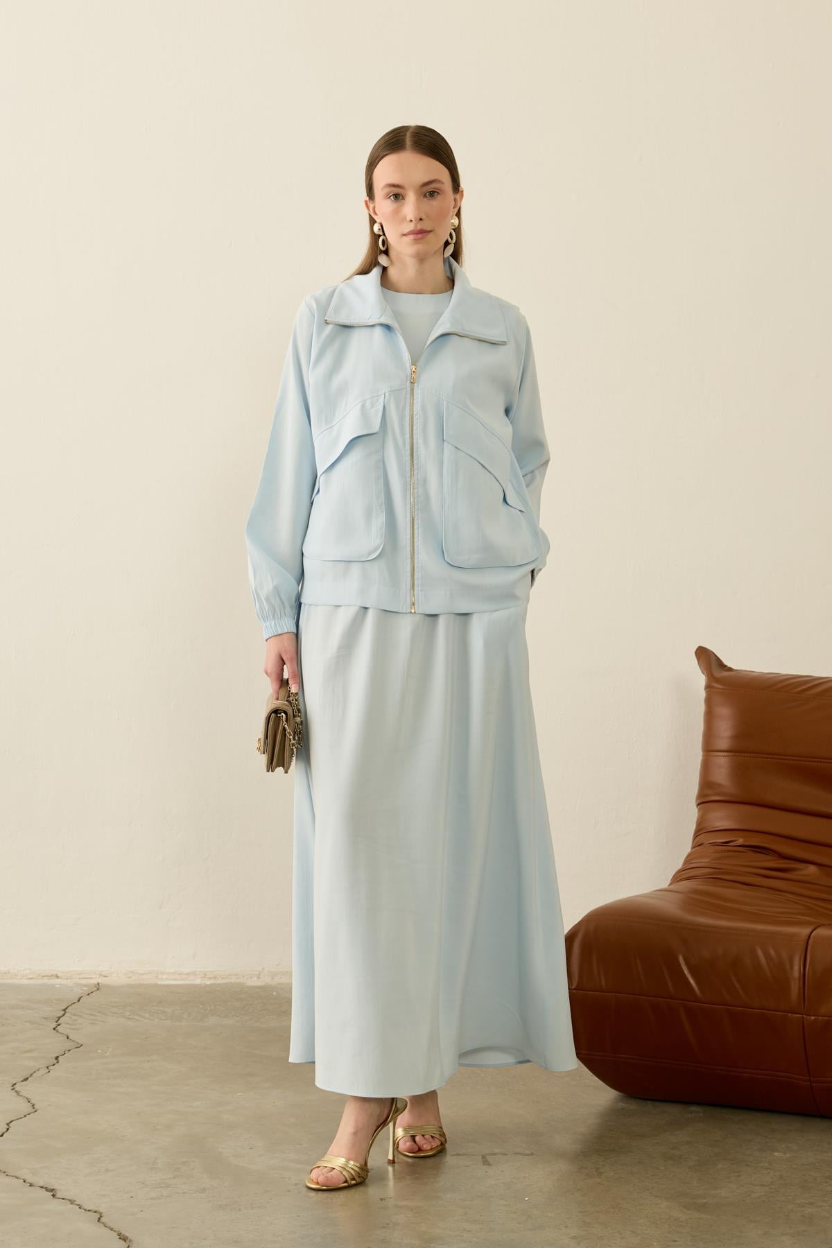 Melosh Büyük Cepli Modal İçlik Elbiseli Takım MAVİ