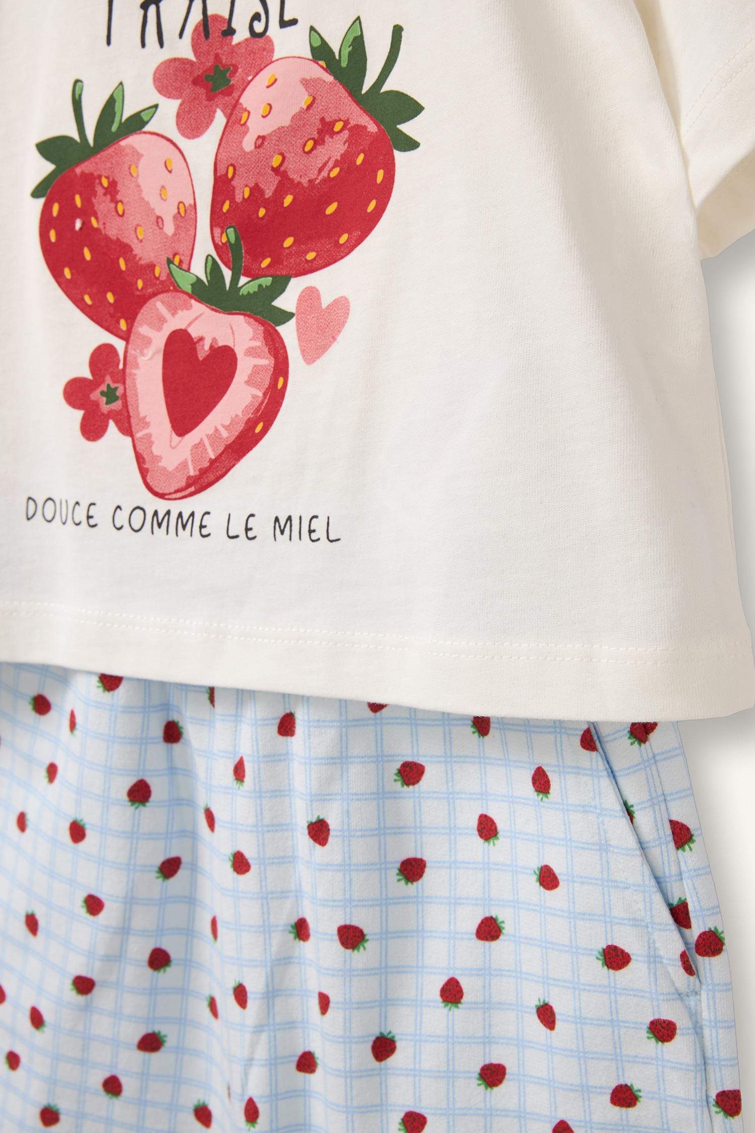 Yumuşak ve rahat kumaşıyla konforlu bir kullanım sunar. Renkli ve sevimli meyve desenleriyle şirin bir görünüm kazandırır. Günlük giyimde konforlu bir seçenektir.