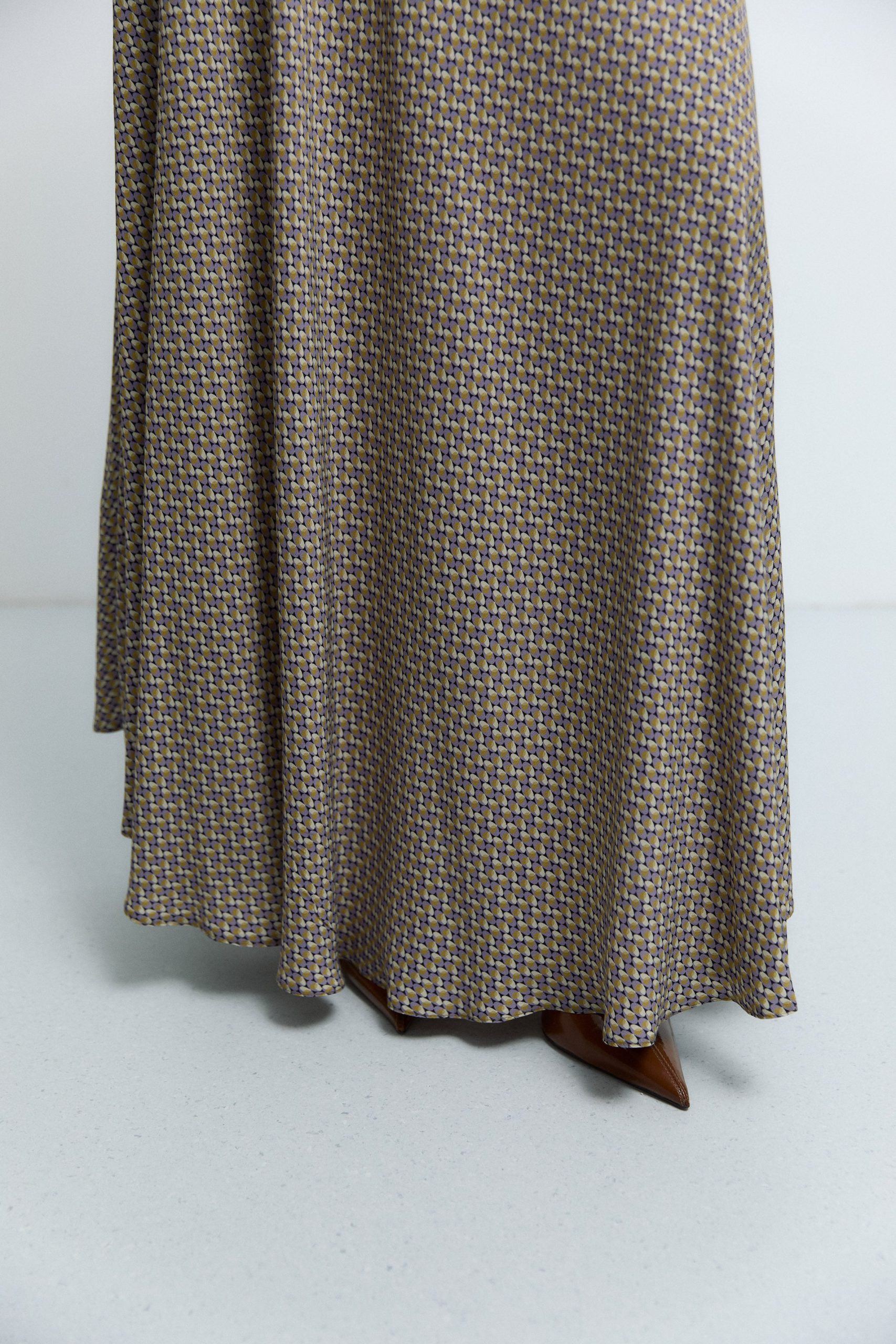 Mini geometrik desenin modern ritmiyle tasarlanan bu etek, net silueti ve dinamik yapısıyla stilinize güçlü bir karakter kazandırır.