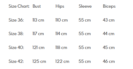 Beden 36: 113 cm 110 cm 55 cm 43 cm
