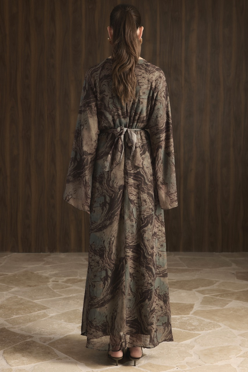 Misty Desenli Şifon Elbise – Kahverengi