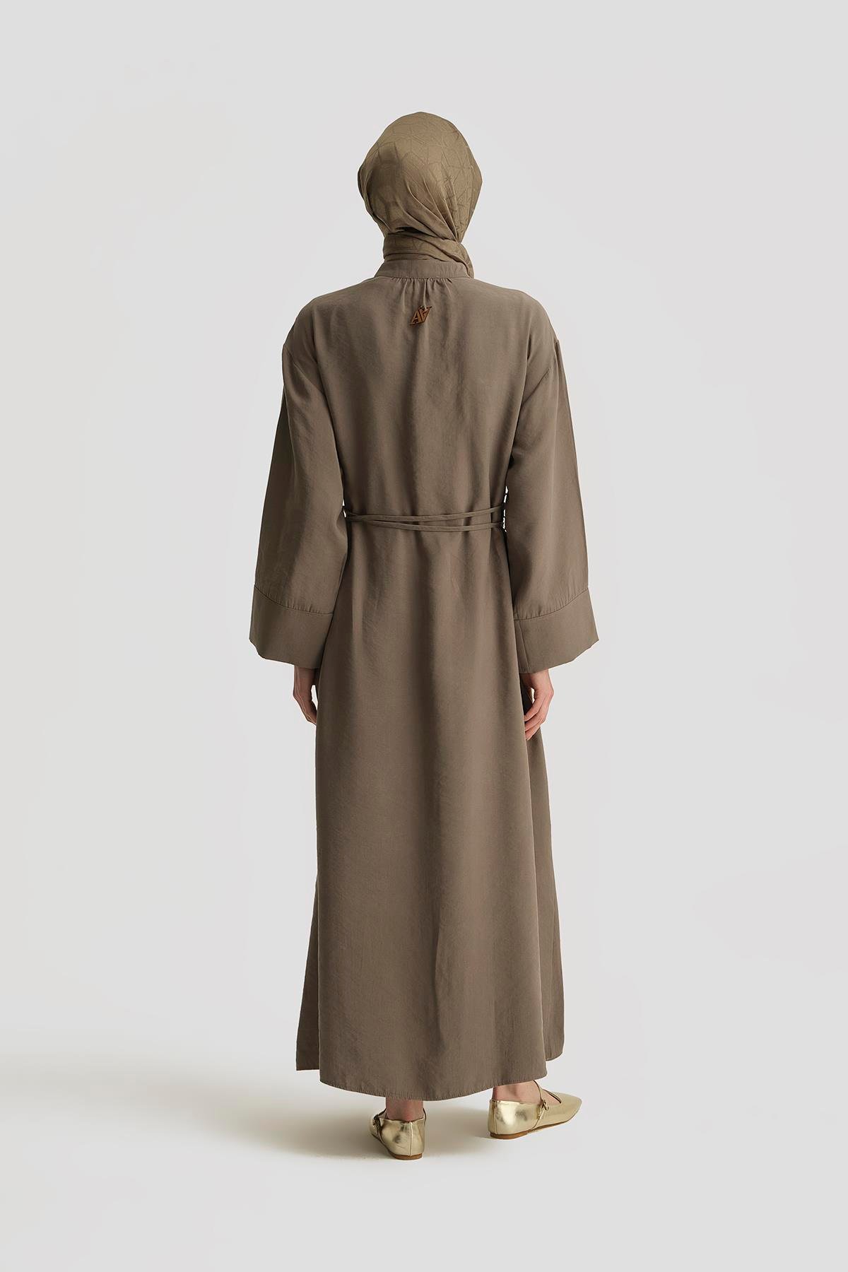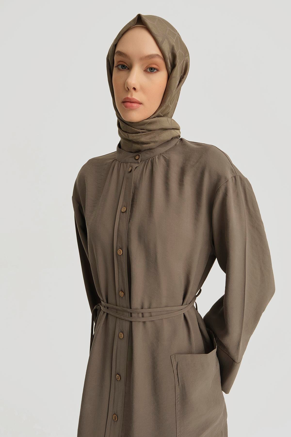 Modal Bağlama Detaylı Elbise Haki