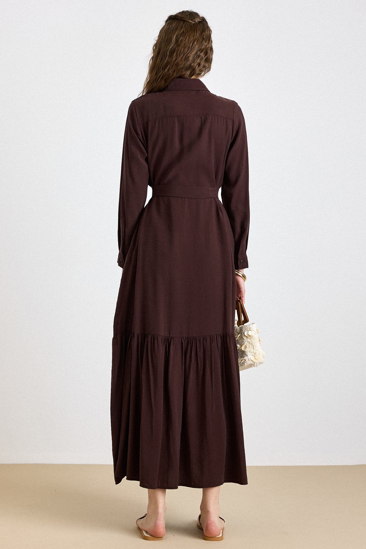 Nervür Detaylı Eteği Fırfırlı Soft Kumaş Elbise KAHVE 9441-E