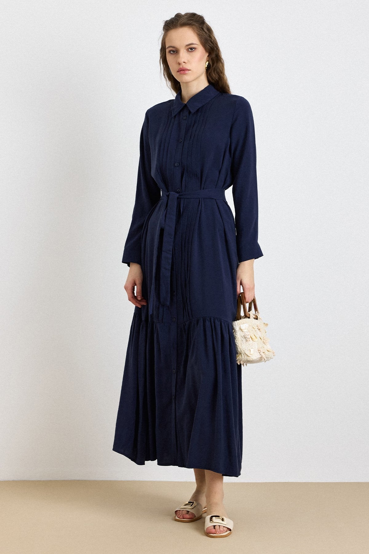 Nervür Detaylı Eteği Fırfırlı Soft Kumaş Elbise LACİVERT 9441-E