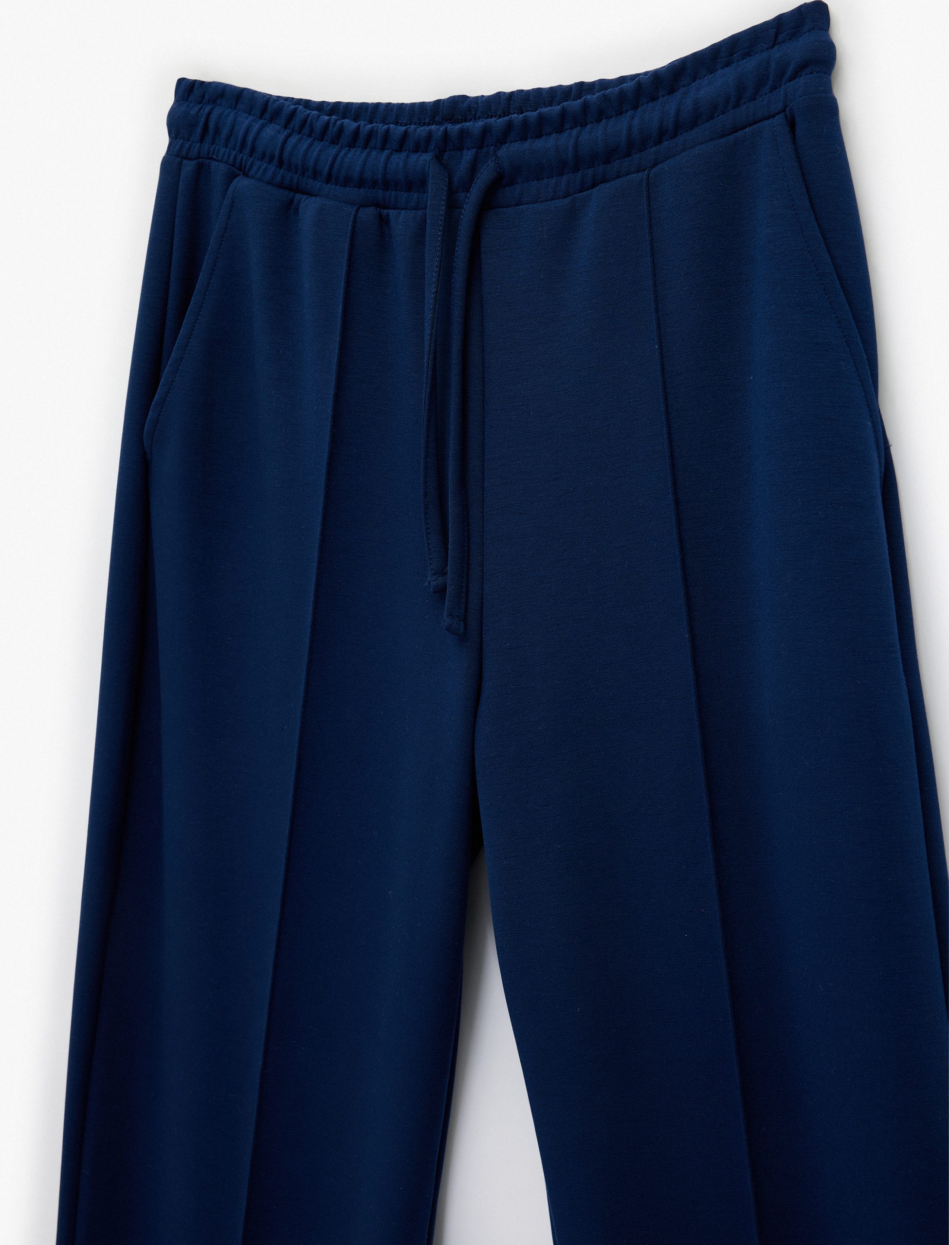 Nervürlü Beli Bağcıklı Cepli Geniş Paça Eşofman Altı