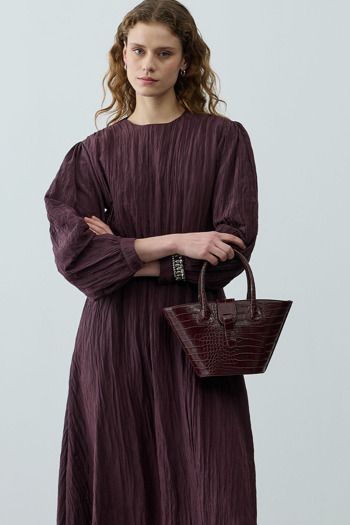 TİMSAH DERİ TOTE ÇANTA BORDO