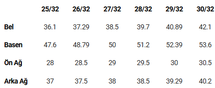 Bel Yüksekliği: Standart Bel