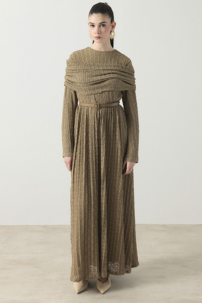 Beli Tünelli Elbise – Kahve