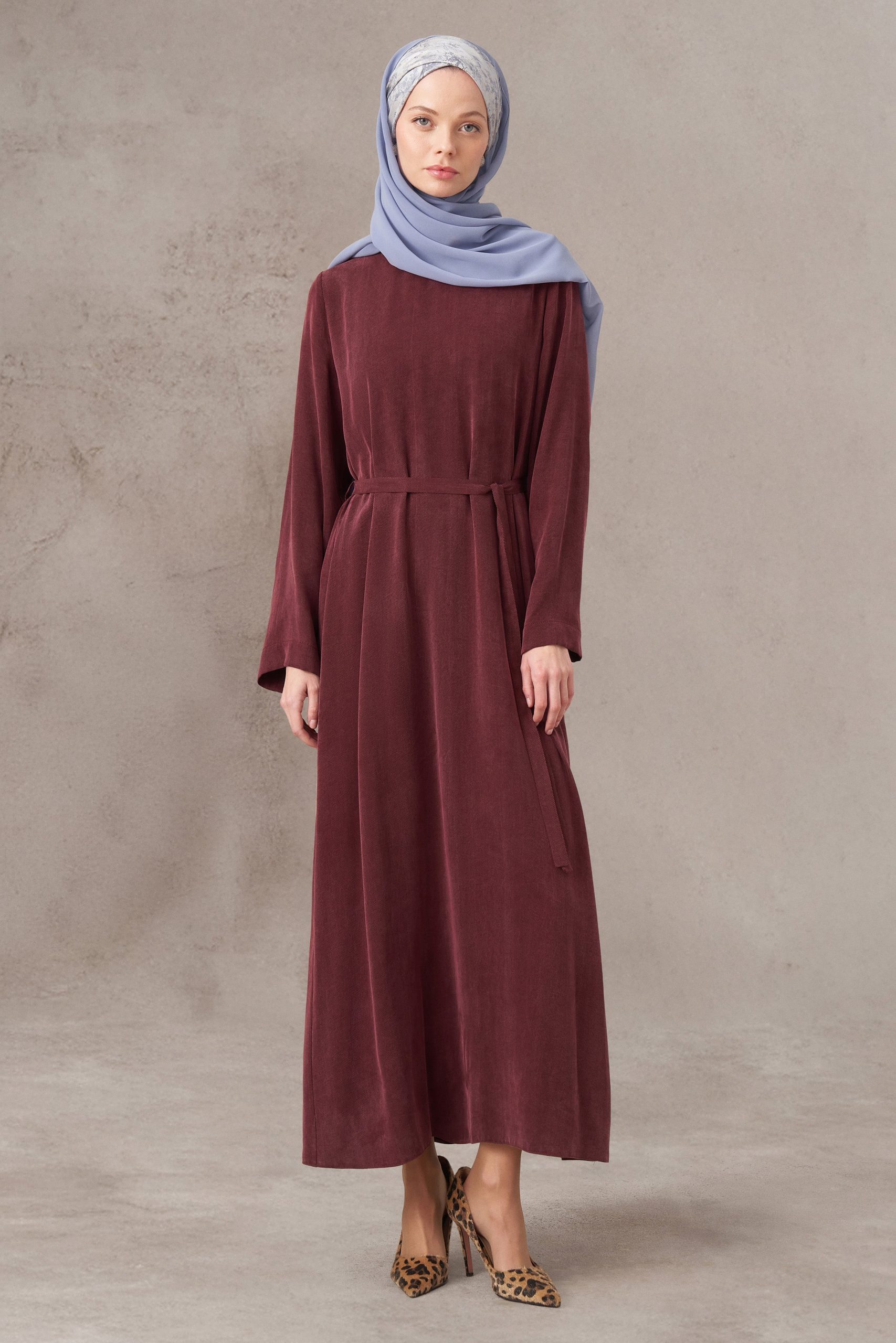 Işıltılı saten dokusuyla asil bir duruş sergileyen bu abiye, zarif kesimi ve inci detaylı kemeriyle şıklığı en sade haliyle yansıtıyor. Davetlerde ve özel günlerde sofistike bir görünüm arayanlar için ideal bir seçim.