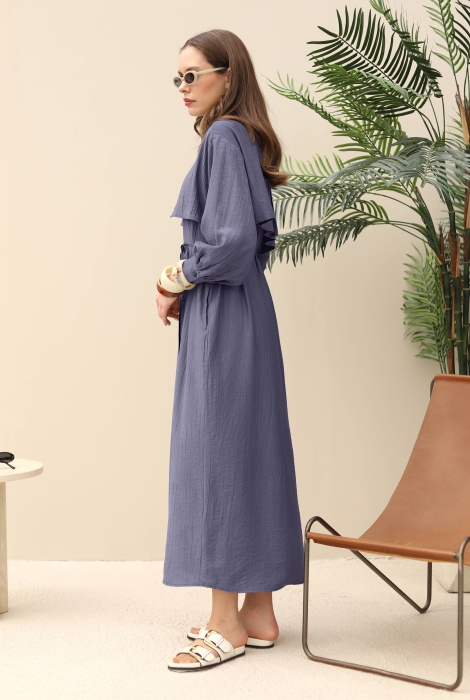Önlüklü Koyu Lavanta Mavisi Elbise