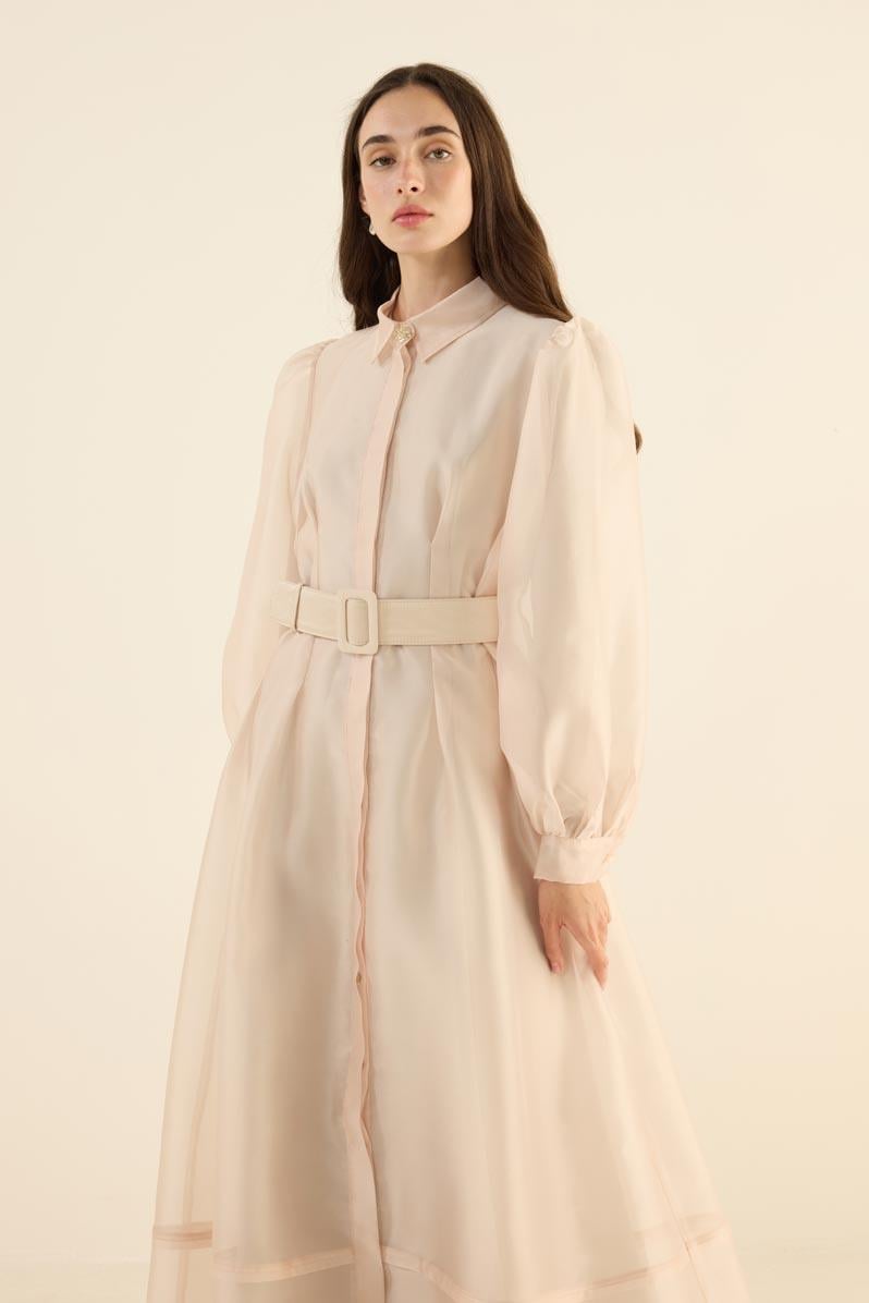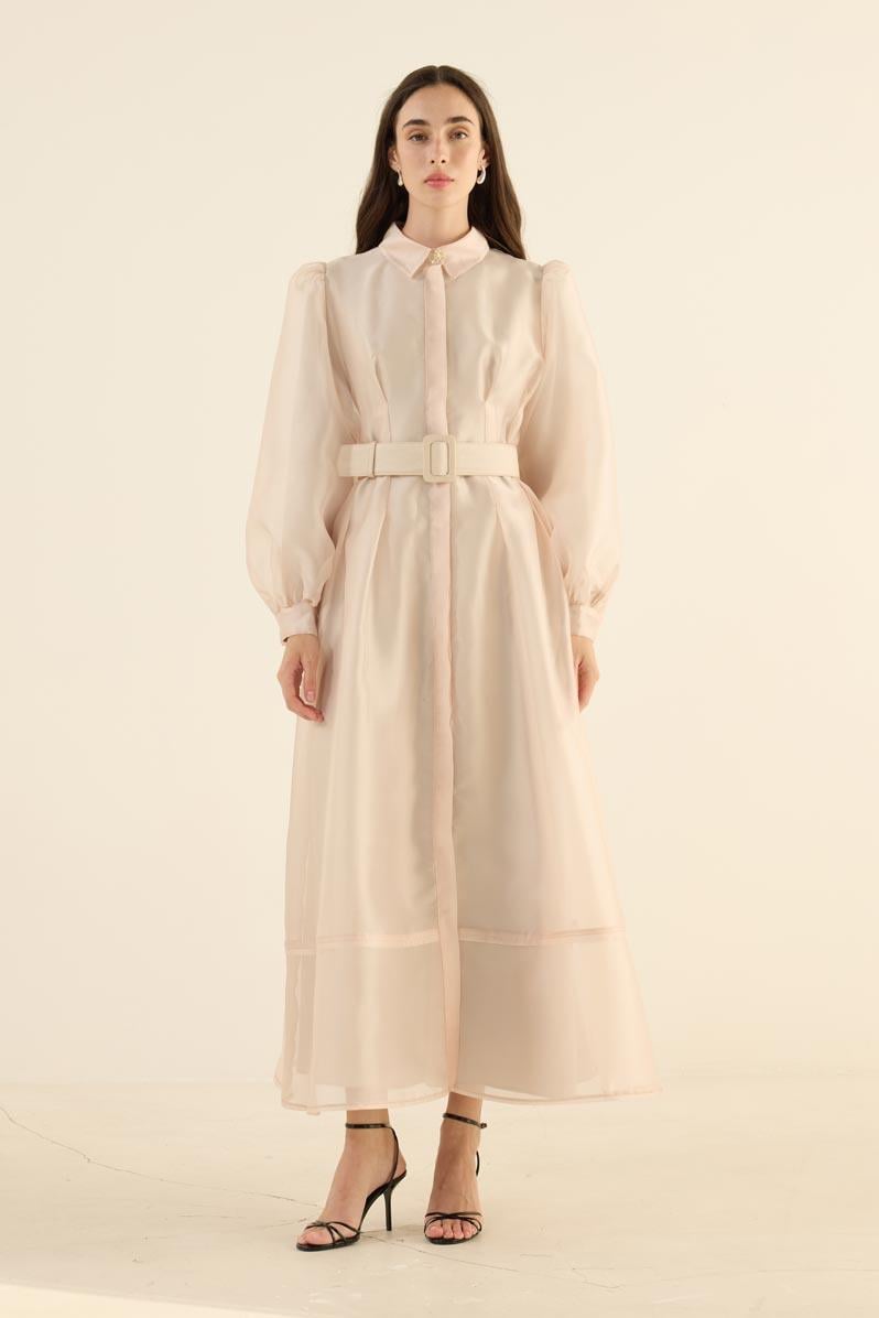 Organze Kap Elbise Krem