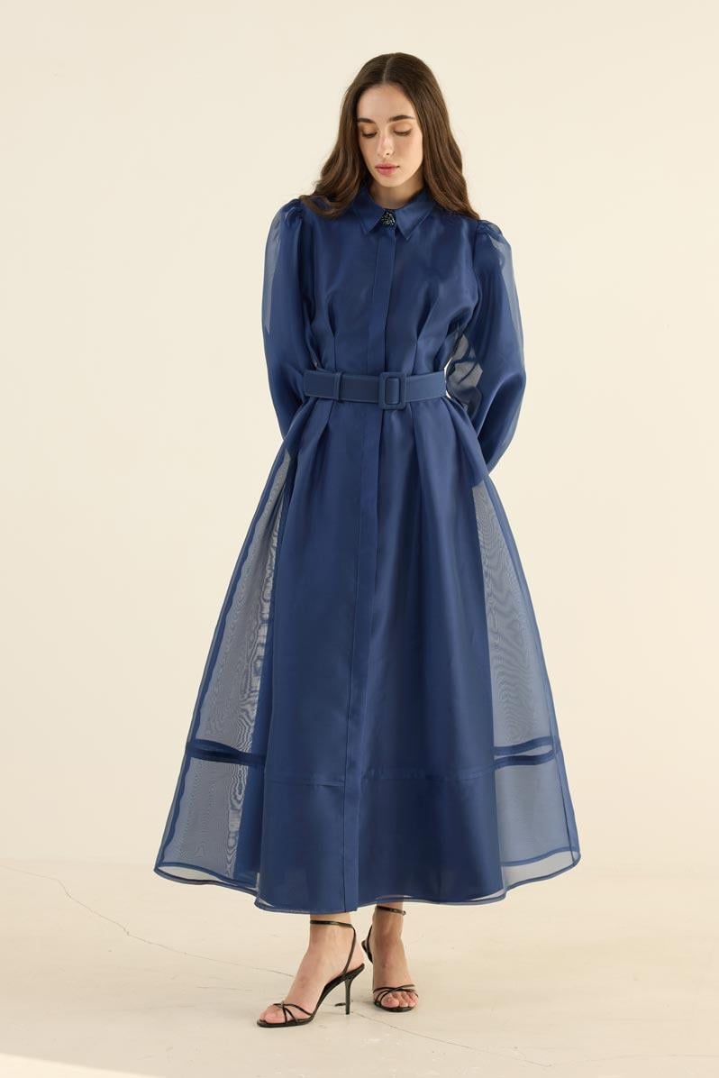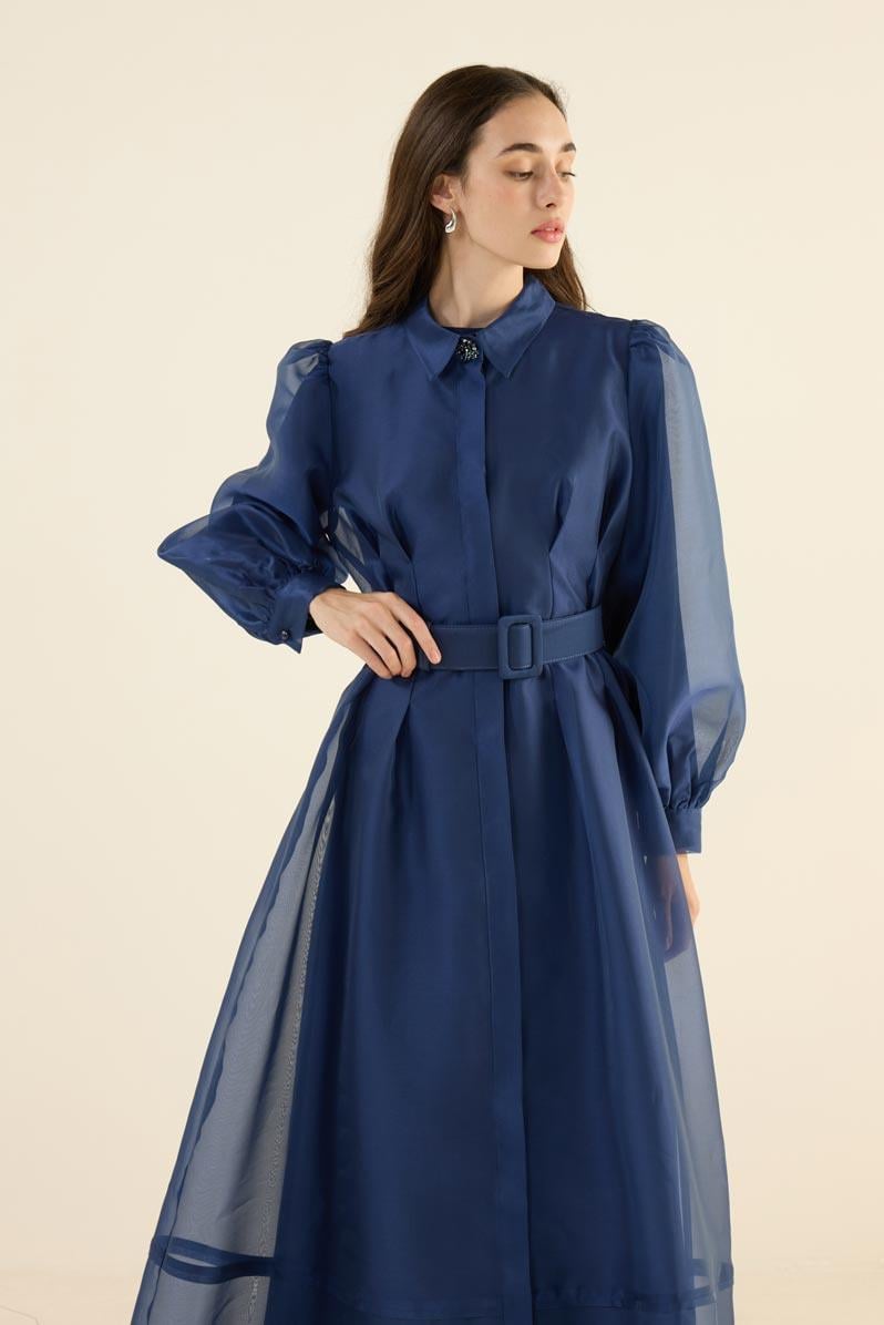 Organze Kap Elbise Lacivert