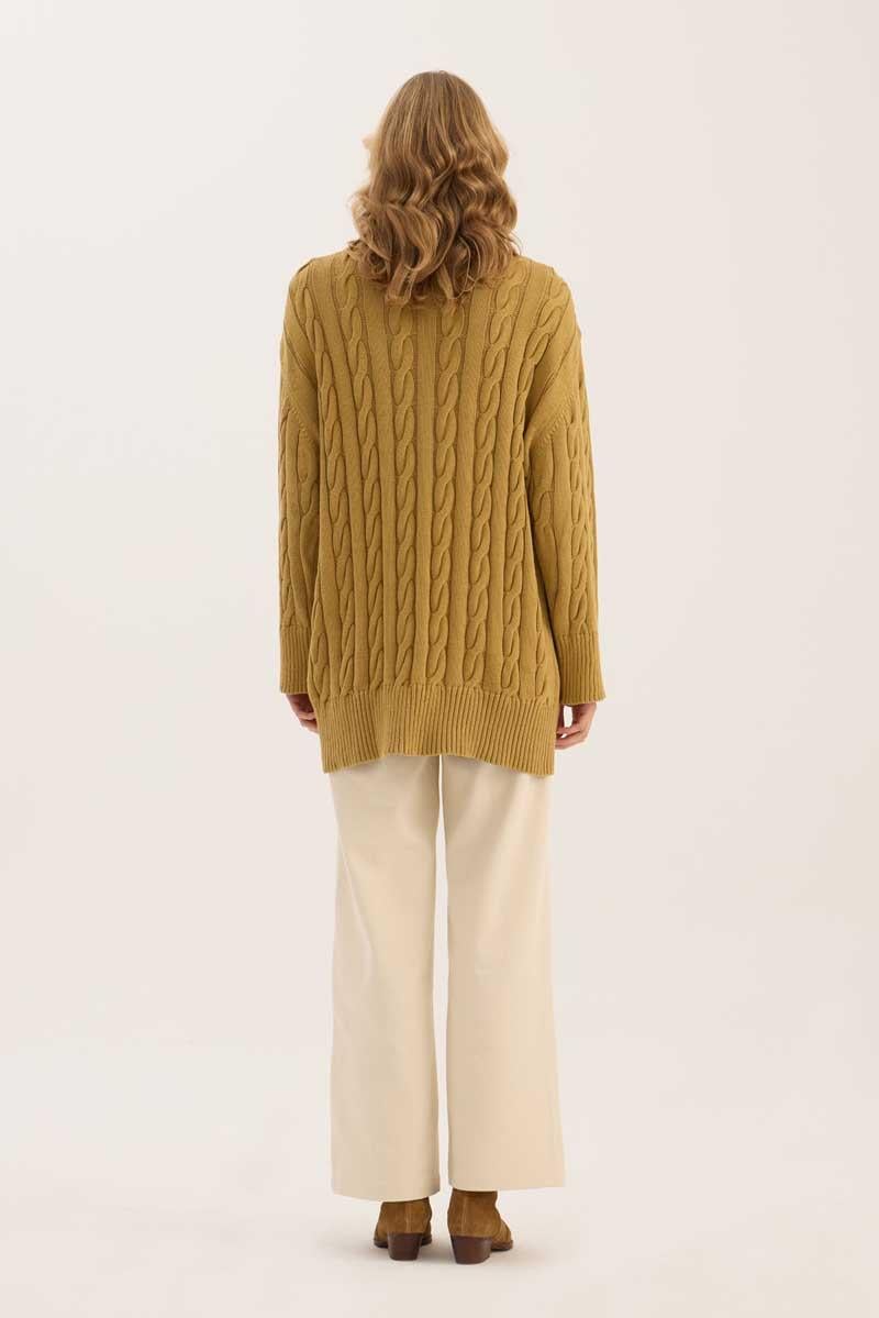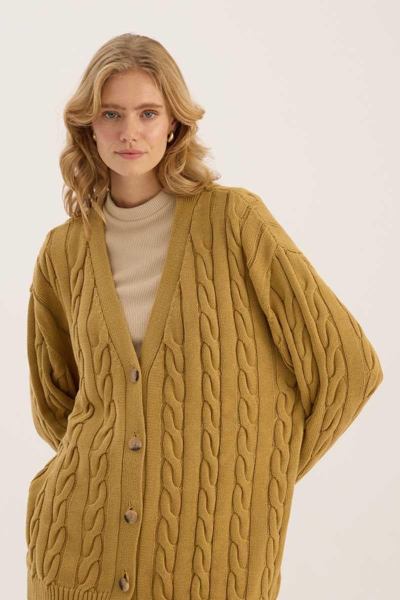 Örgü Motifli Hırka Zeytin Yeşili