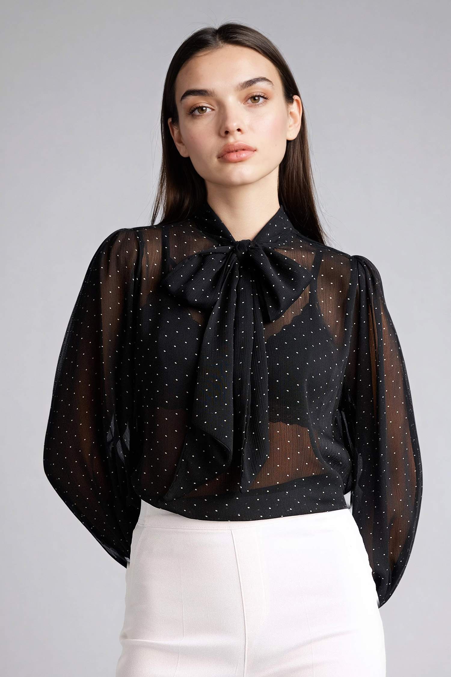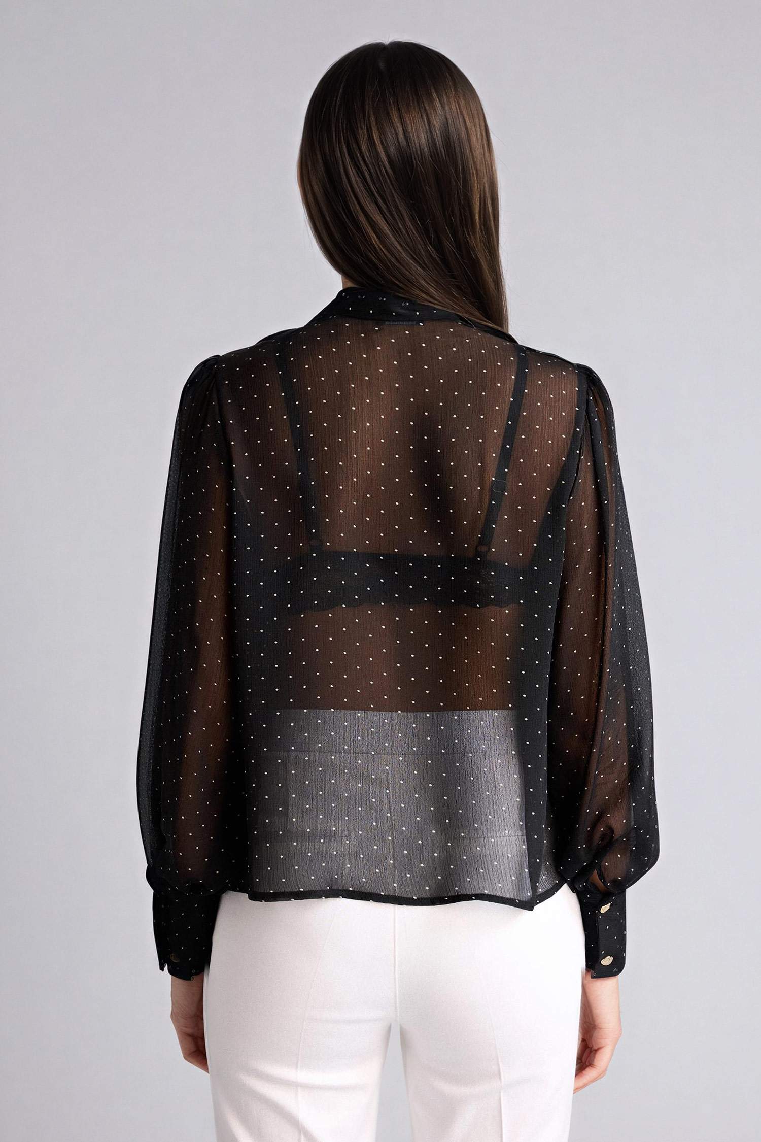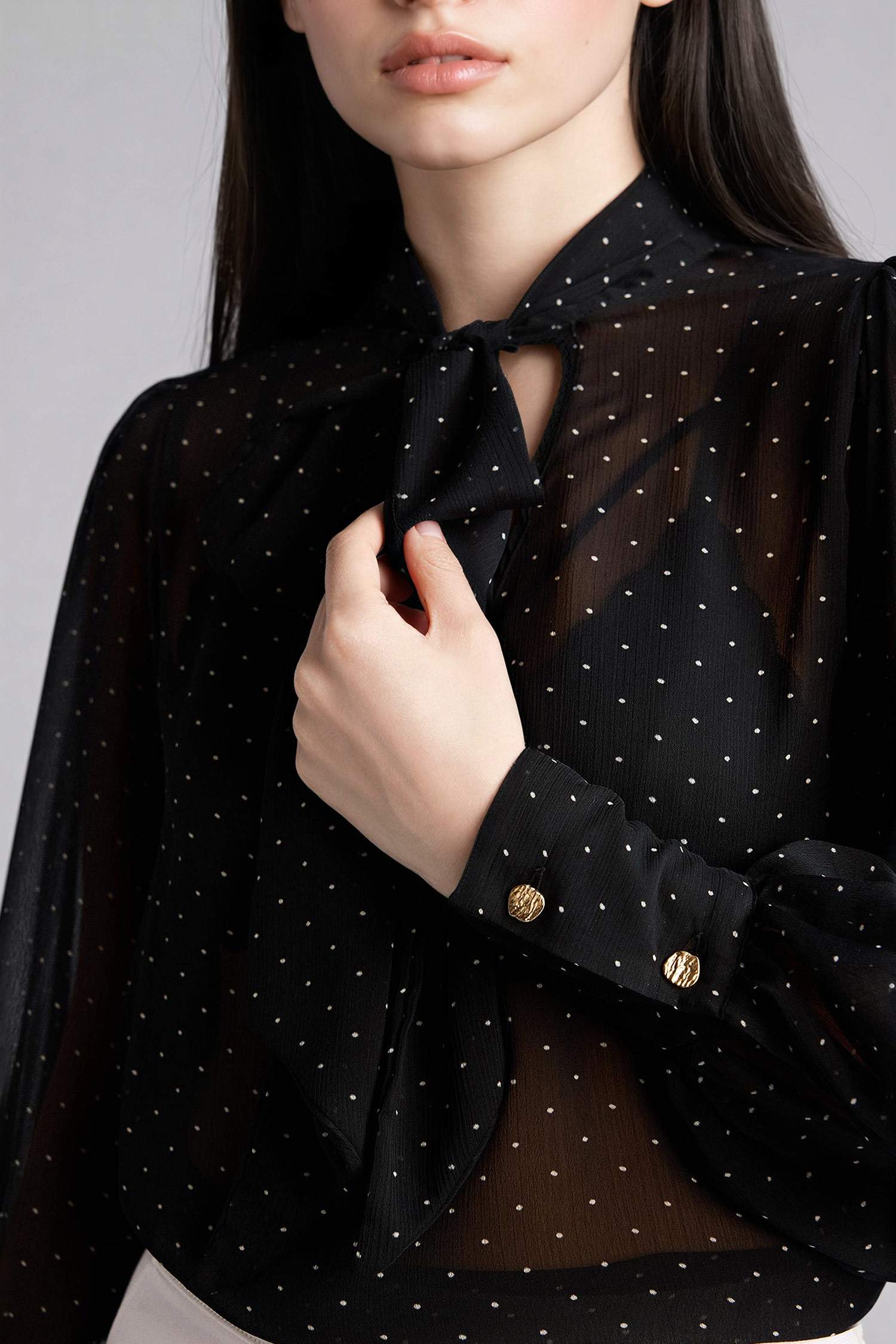 Overshırt Fıt Fular Yaka Simli Çapraz Dokuma Bluz