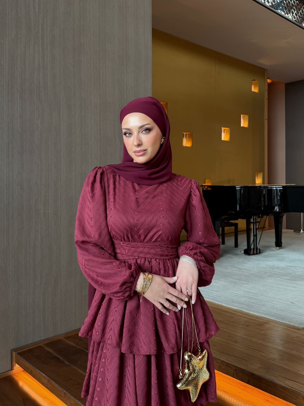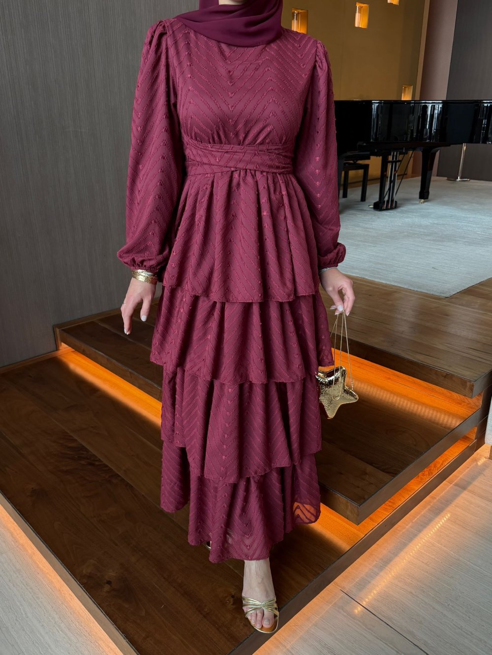 Parla Elbise, kabartma desenli kesme şifon kumaştan üretilmiştir. Kemer detayı elbiseyle birlikte gelmektedir. Arkasında fermuar bulunan bu şık elbisenin kolları lastiklidir. Ön ve arka kısımları kat detaylarıyla zenginleştirilmiştir. Boyu 135 cm, göğüs ölçüsü 48 cm, omuz genişliği 38 cm ve bel ölçüsü 49 cm’dir. Astarlı olarak tasarlanmıştır.