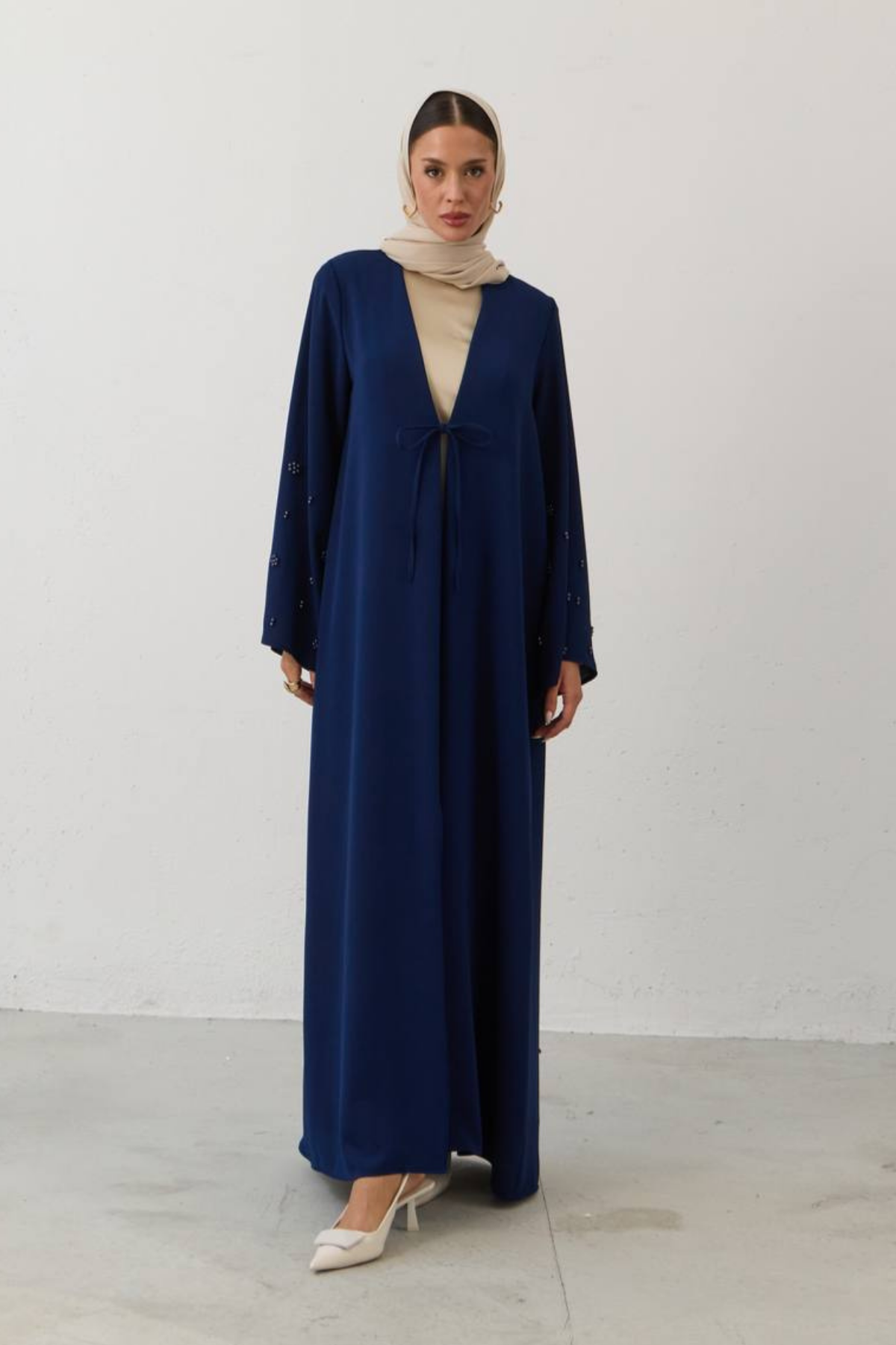 • Premium krep kumaş – hafif, nefes alabilir ve iç göstermeyen yapı• Cilde yumuşak dokunuş – zarif hareket sağlar• Kollarında el işçiliğiyle tamamlanmış inci görünümlü çiçek nakışları• Ayarlanabilir stil için bağlamalı ön tasarım – açık veya yarı kapalı kullanılabilir• Farklı vücut tiplerine uyum sağlayan dökümlü A-kesim• Günlük kullanım, zarif akşamlar veya özel davetler için ideal• 4 sofistike renk seçeneği: Siyah, Kırık Beyaz, Soğuk Gri, Lacivert