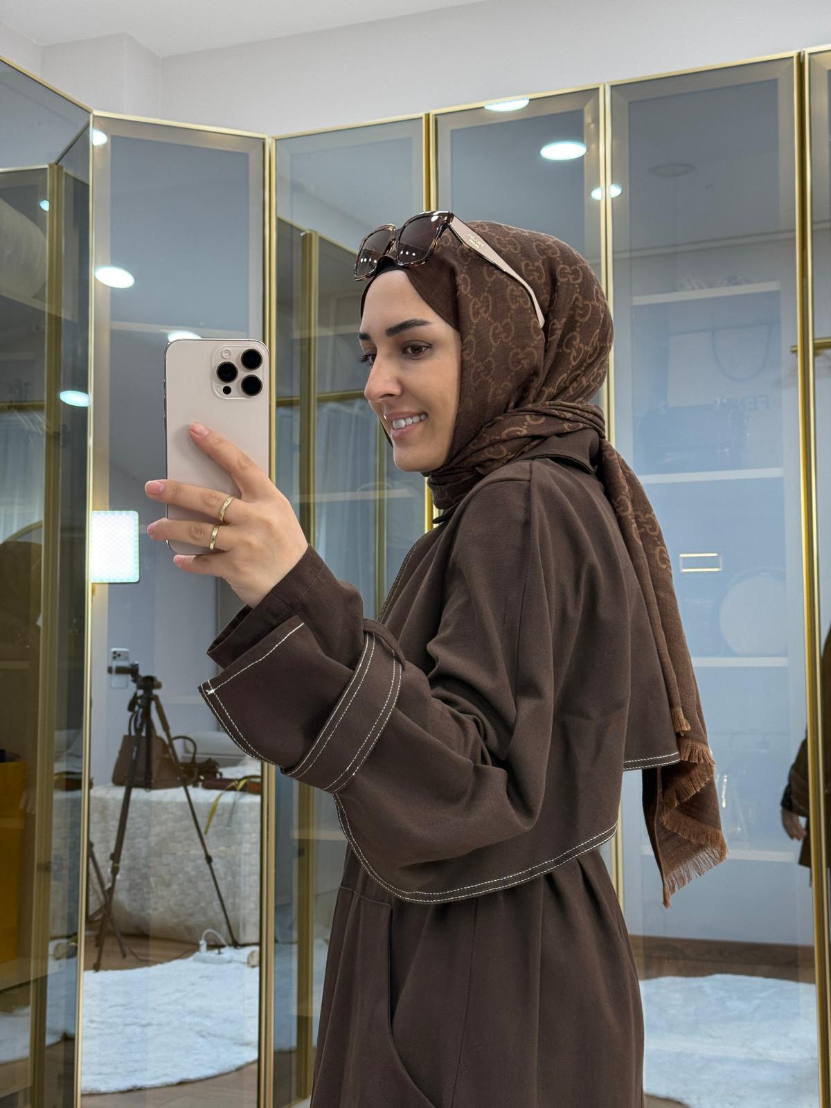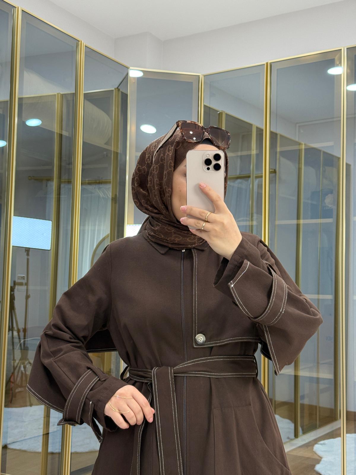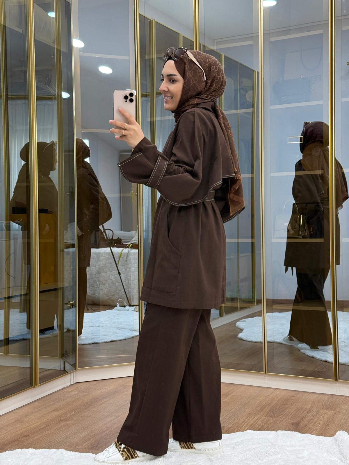 Pelerinli Gabardin Takım Kahverengi