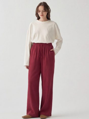 Şıklığı detaylarda arayanlara özel Bordo-Beli Lastikli Müslin Pantolon ile zarif bir görünüm yakalayın. Günlük ve özel kombinler için ideal tasarım