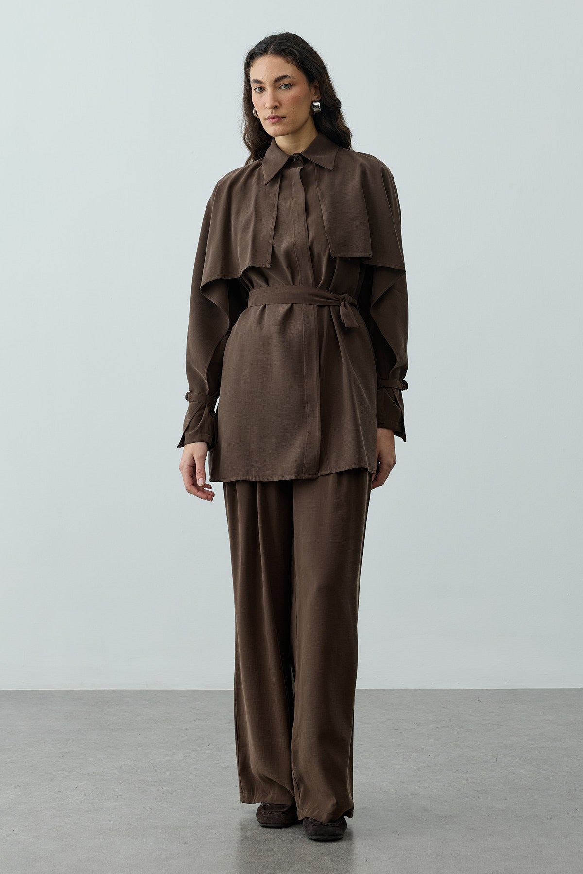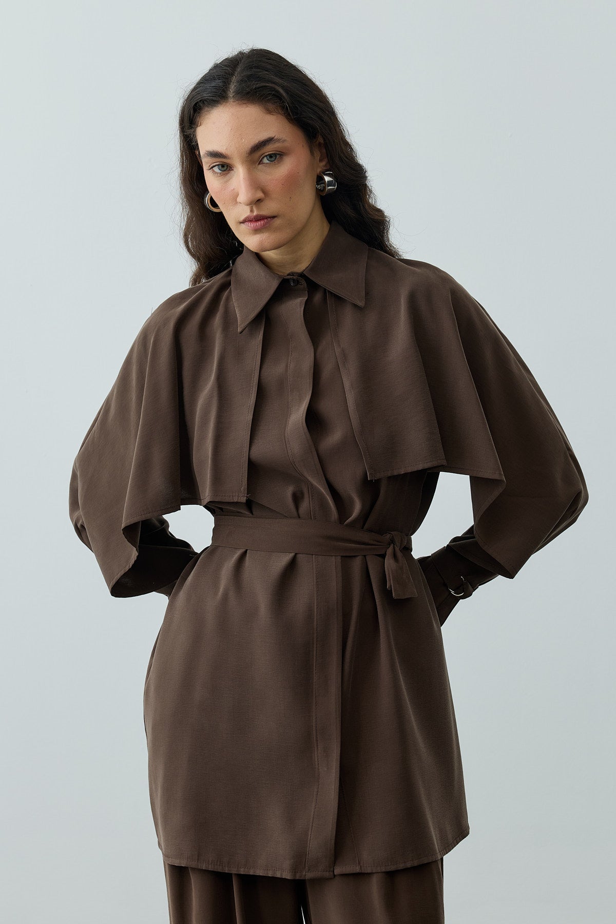 Pelerinli Gömlek Kahverengi