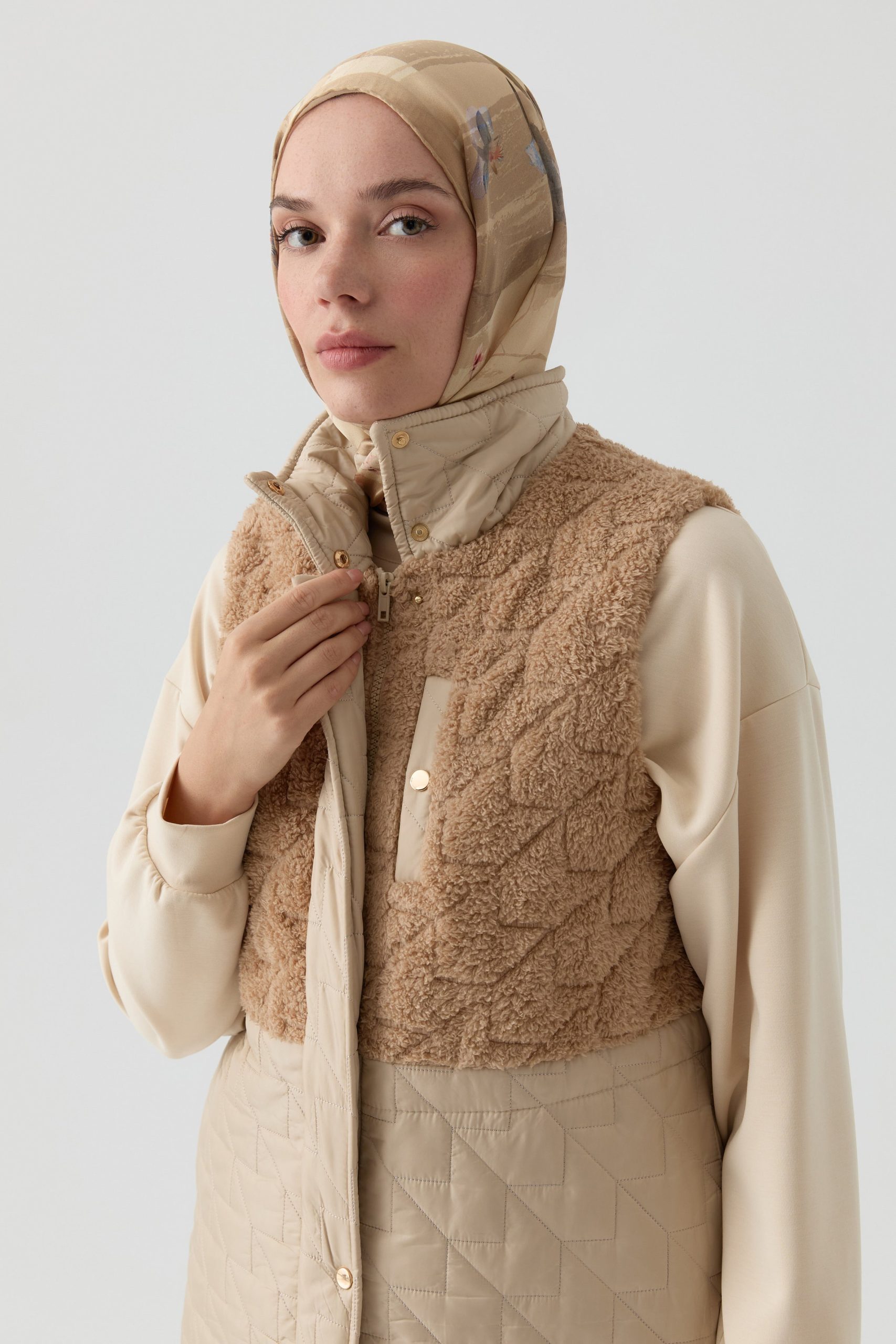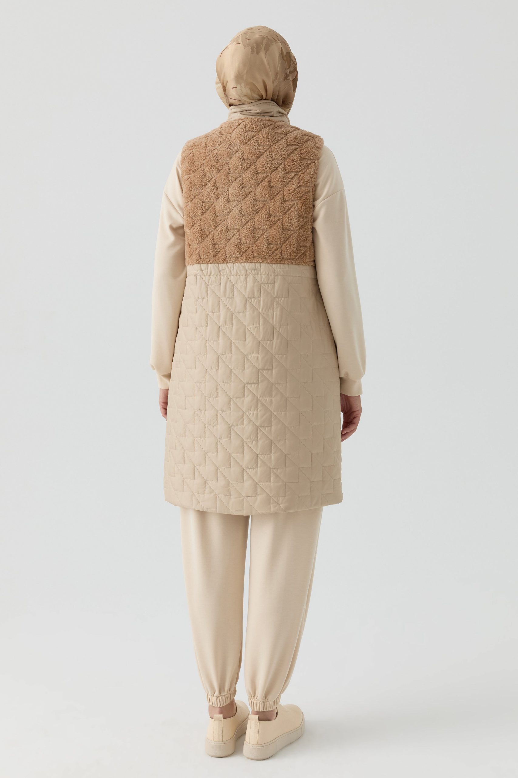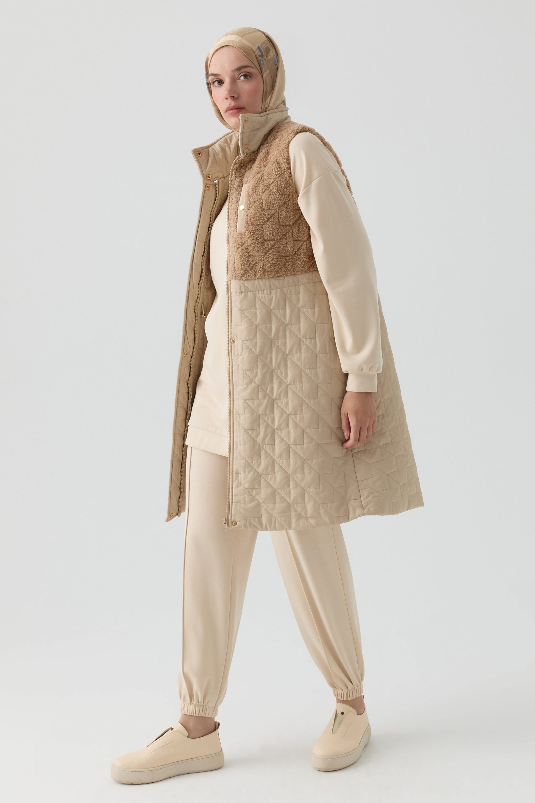 Modern hatlarıyla öne çıkan Deri Piping Detaylı Cep Yeleği, işlevselliği zarafetle birleştiren bir tasarıma sahiptir. Deri piping detayları minimalist görünümü güçlendirerek sofistike bir dokunuş katarken, cepler pratiklik sunar.