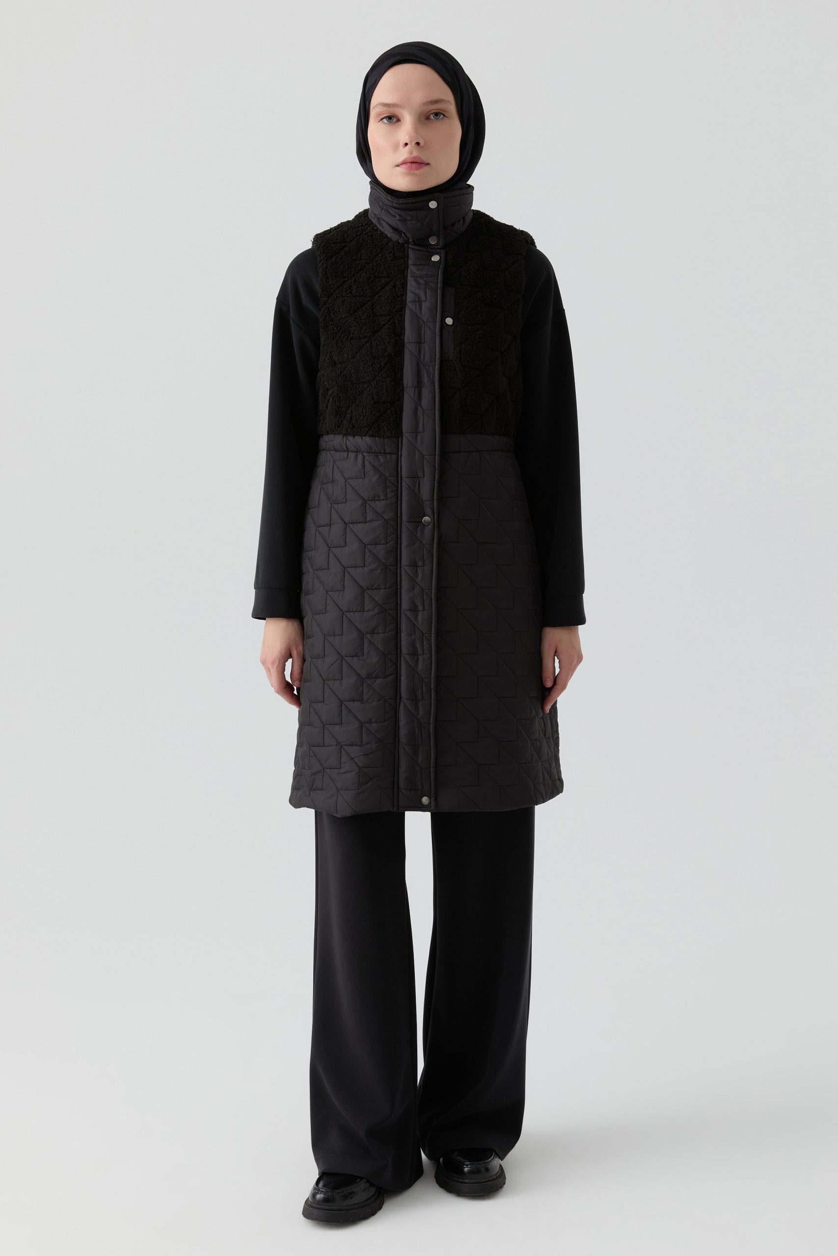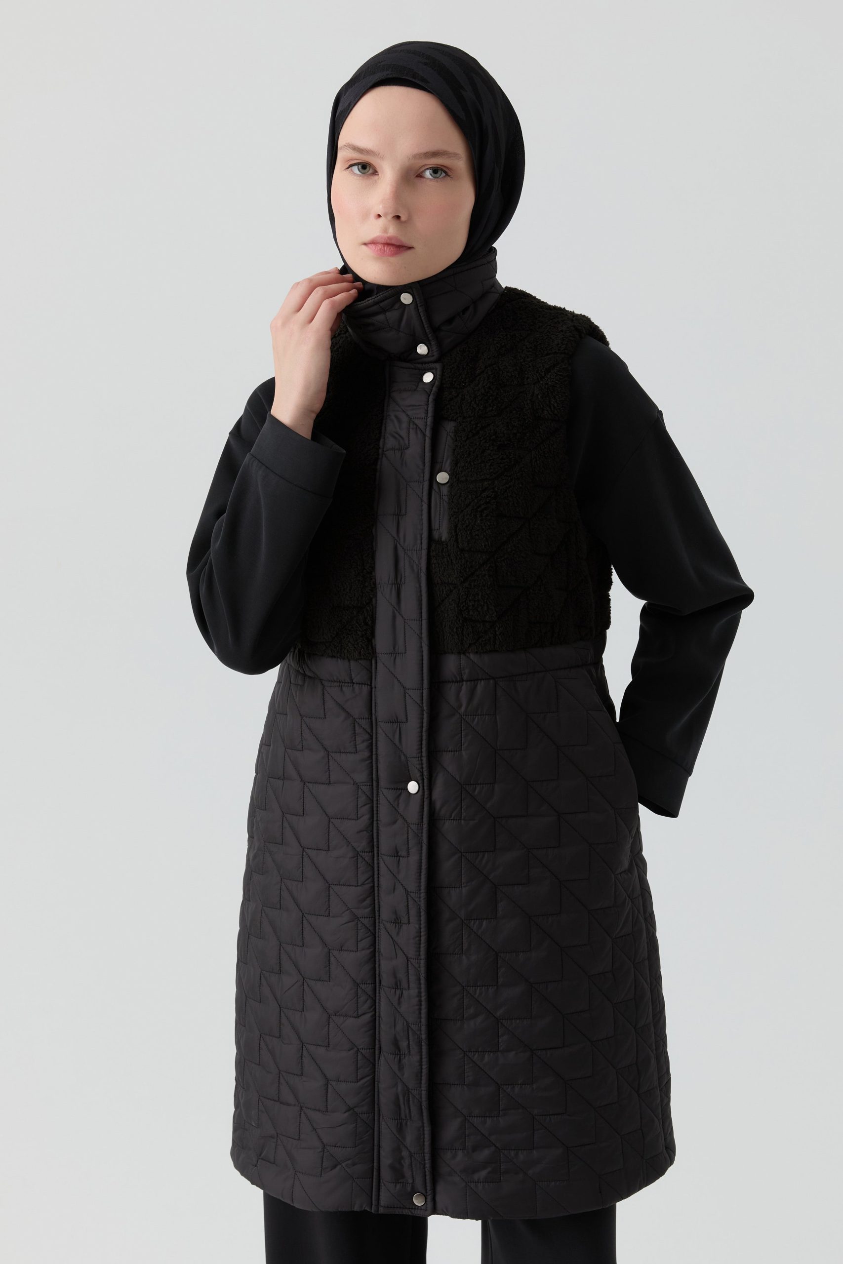 Peluş Garnili Kapitone Yelek – Siyah