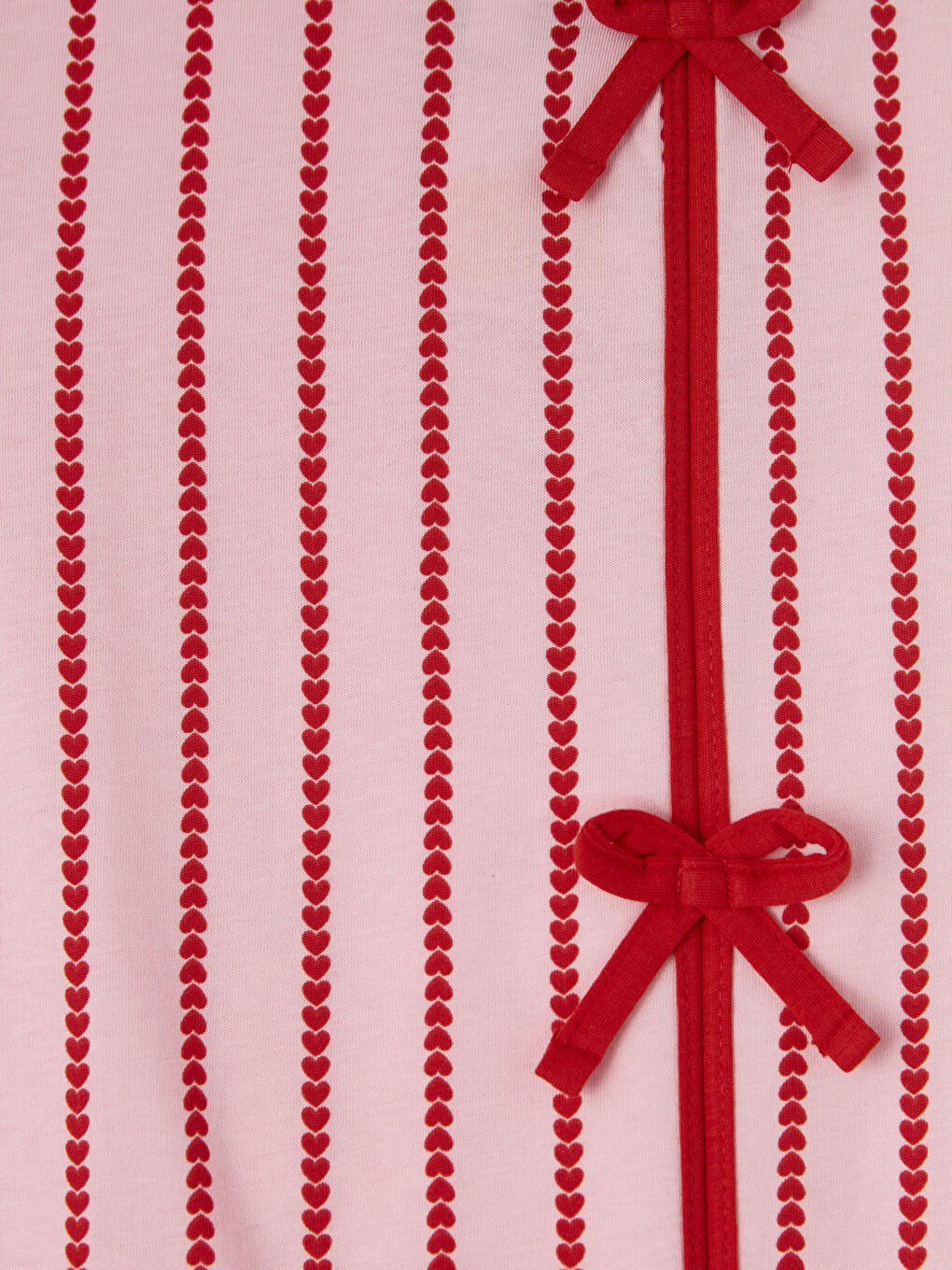 Etiketler: bow detail, children's sleepwear, cotton pajamas, girl's pajamas, pink pajamas, shorts pajama set, V-neck