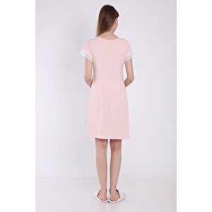 Pembe Kadın Dantelli Önden Bölmeli Hamile Geceliği