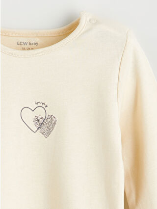Ekru Baskılı Kız Bebek Bluz ve Tayt
