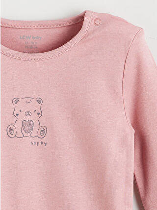 Pembe Kalp ve Ayıcık Baskılı Kız Uzun Kollu Kız Bebek Çıtçıtlı Body 2’li