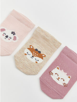 Pembe Kız Bebek Hayvan Desenli 3’lü Patik Çorap