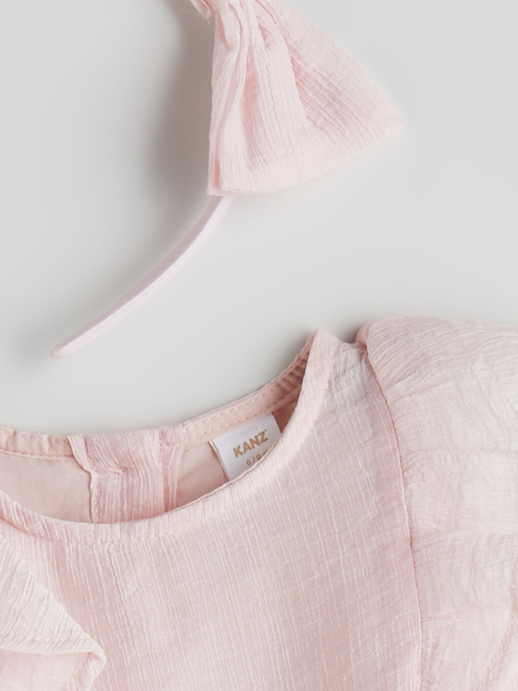 Pembe Kız Bebek Müslin Elbise ve Taç 2’li
