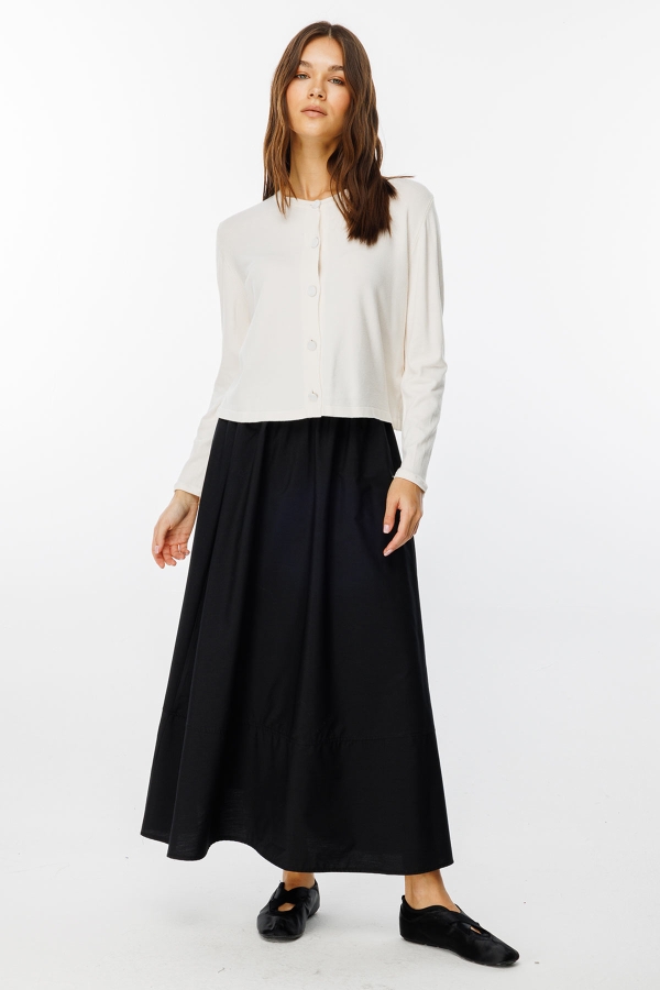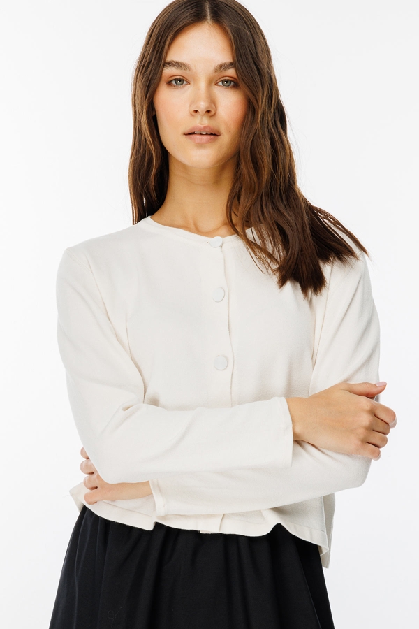 Bisiklet yaka, önden düğmeli, yumuşak dokulu triko hırka.