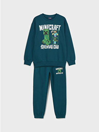 Petrol Minecraft Baskılı Erkek Çocuk Eşofman Takımı