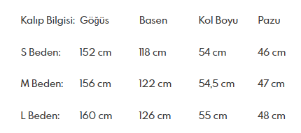 YUKARDA BELİRTİLEN ÖLÇÜLER STANDART BEDENE AİTTİR.